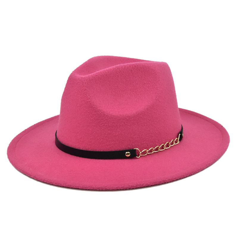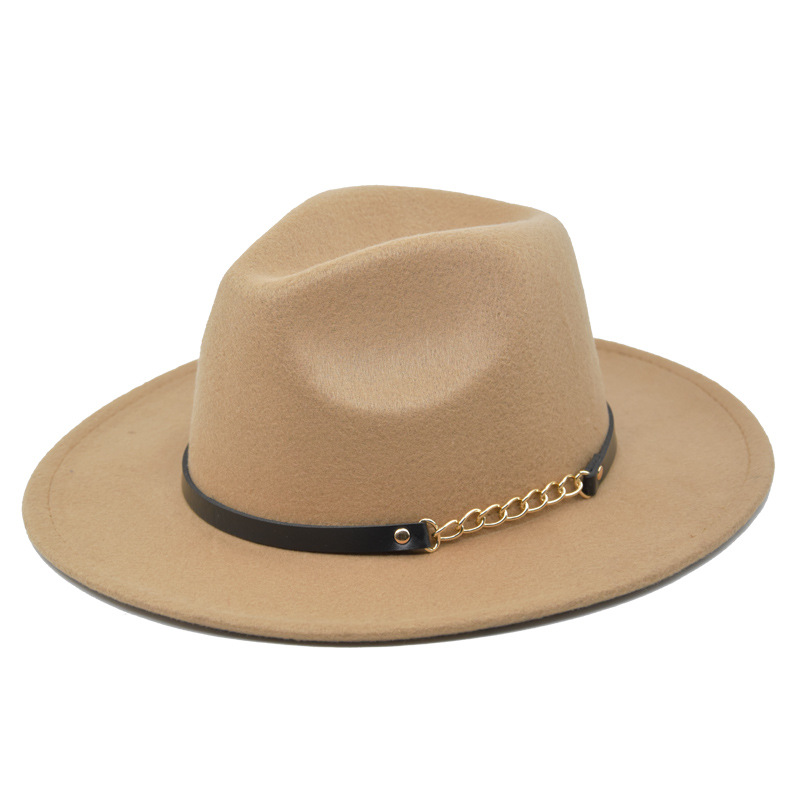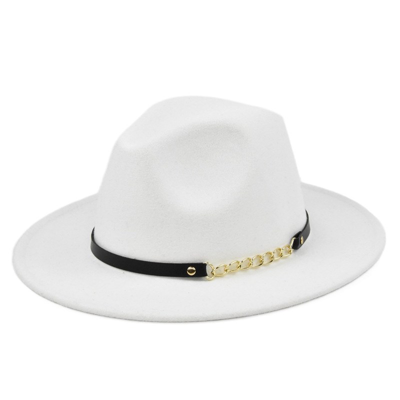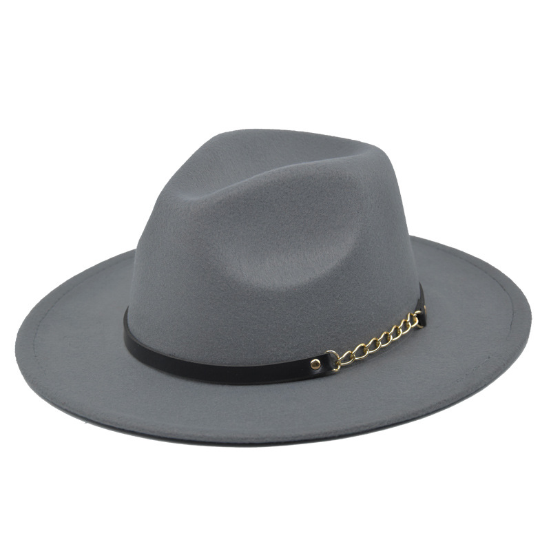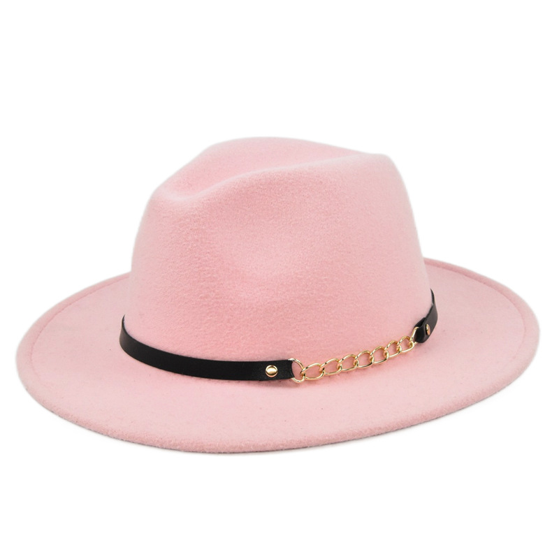 跨境简约呢毡大檐帽欧美外贸毛呢帽子链条英伦风经典爵士礼帽