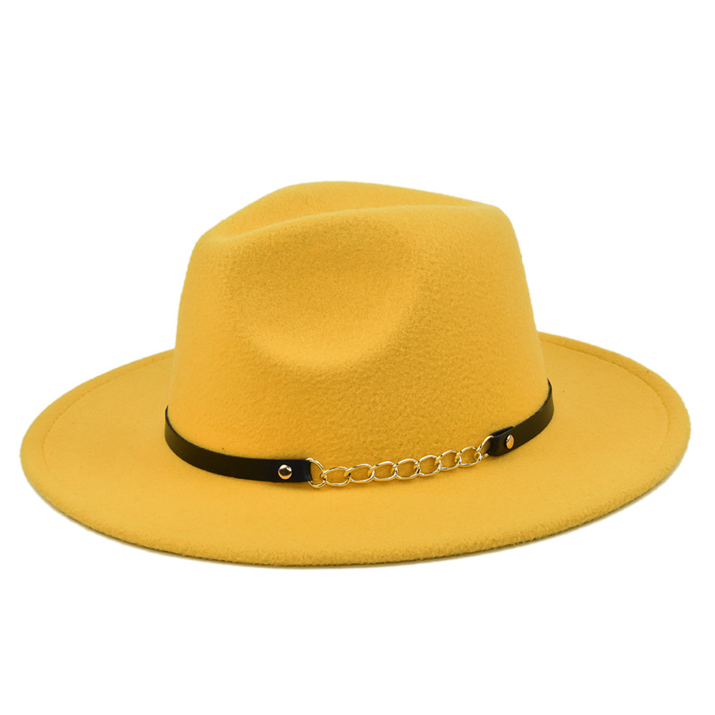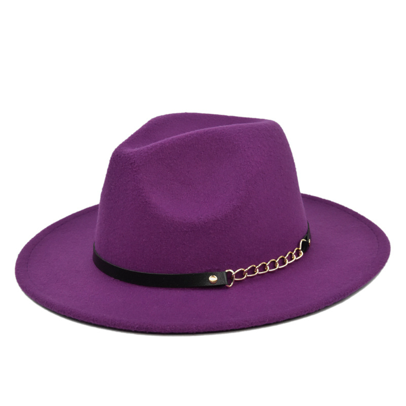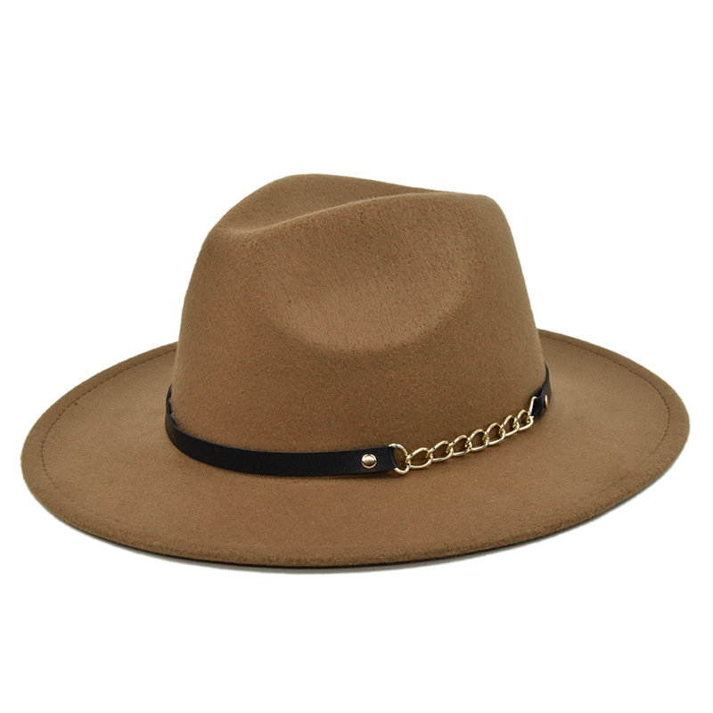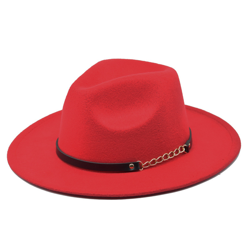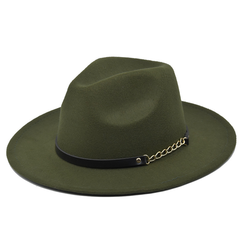 跨境简约呢毡大檐帽欧美外贸毛呢帽子链条英伦风经典爵士礼帽