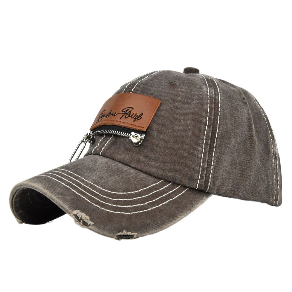 跨境新款做旧棒球帽贴布拉链鸭舌帽复古棒球帽弯檐遮阳帽一件代发