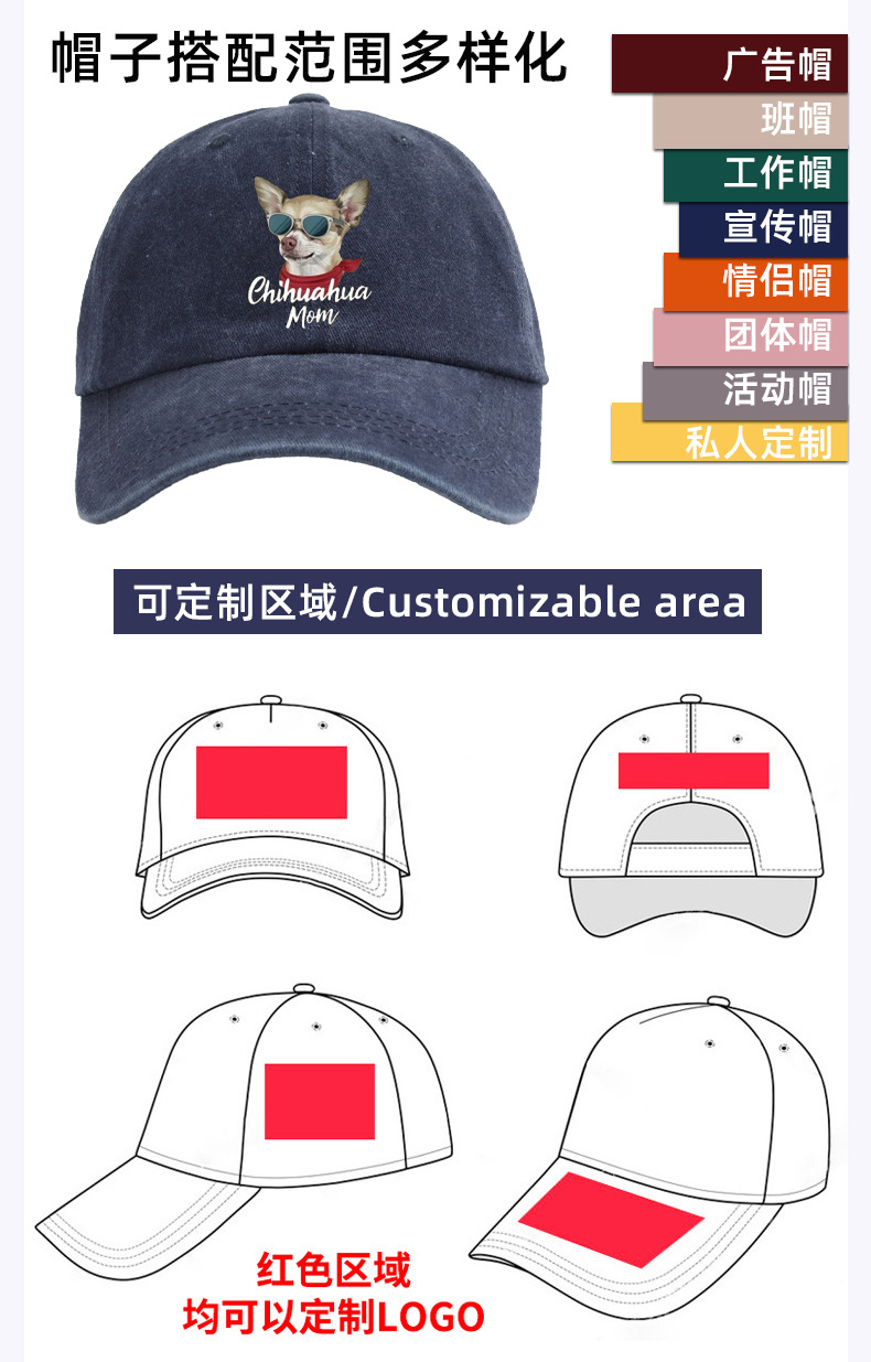 2025跨境热卖吉娃娃妈妈水洗复古老爹帽男女棒球帽百搭打样批发