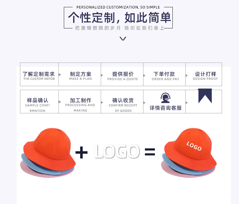 幼儿园小黄帽绣印logo棉质广告帽盆帽儿童韩版渔夫帽男女夏季批发
