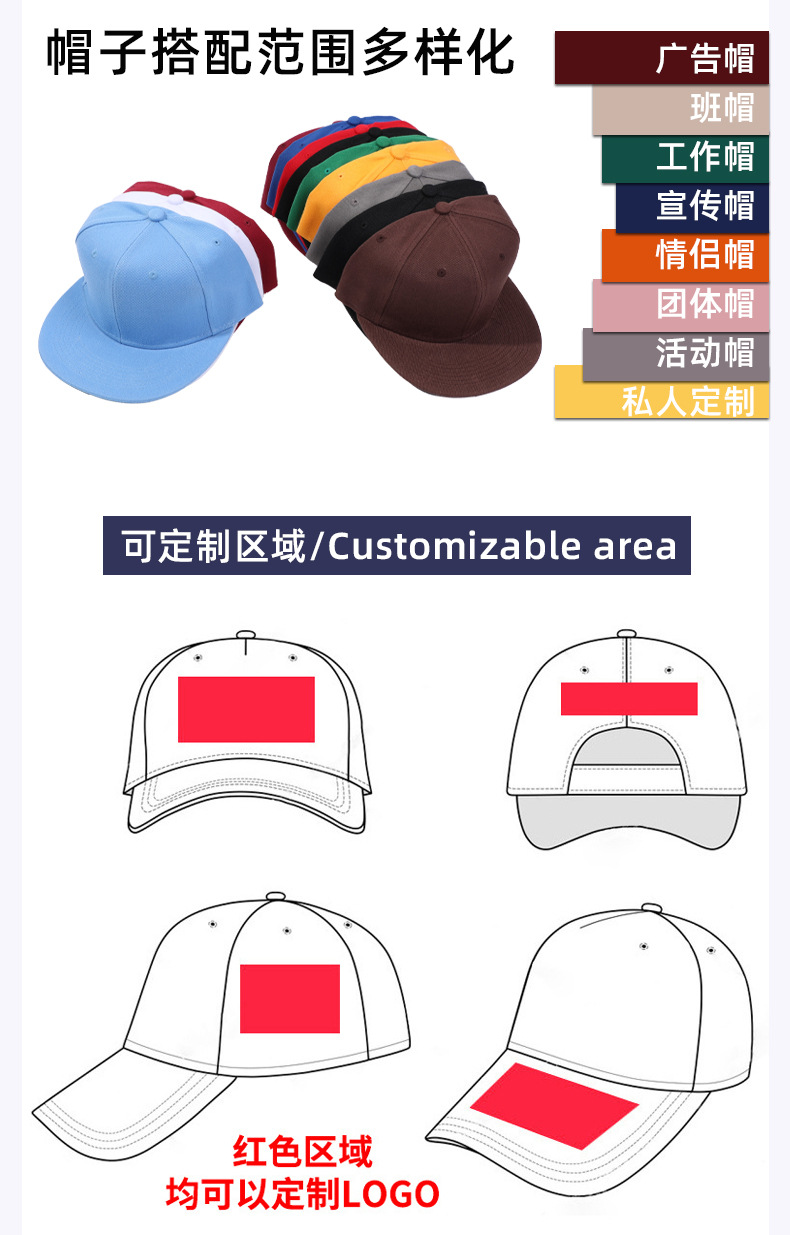 跨境纯棉棒球帽平檐logo印字旅游遮阳帽鸭舌帽百搭户外运动打样