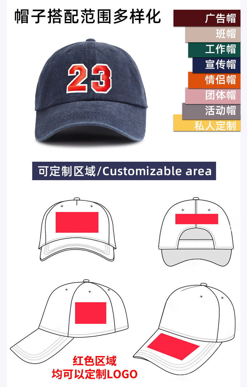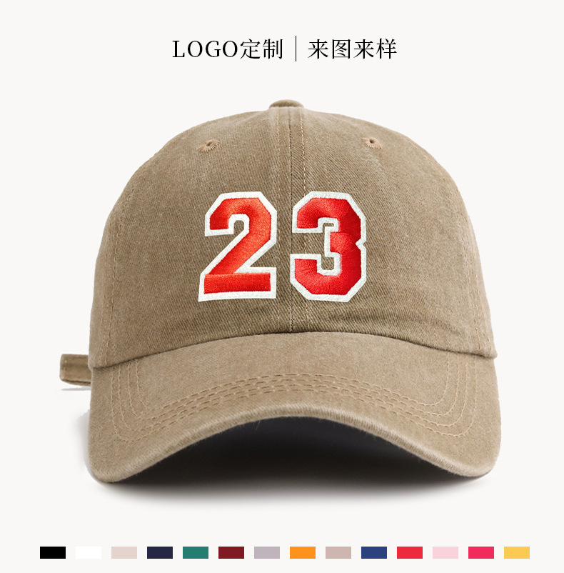 新款跨境刺绣复古23号棒球帽美式水洗做旧鸭舌帽休闲百搭帽子拿样