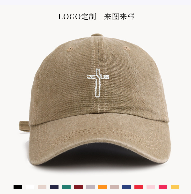 跨境新款韩版十字架棒球帽美式水洗做旧复古鸭舌帽男女帽子拿样