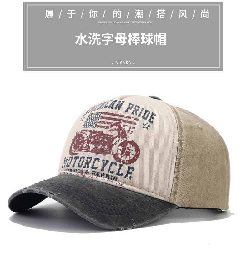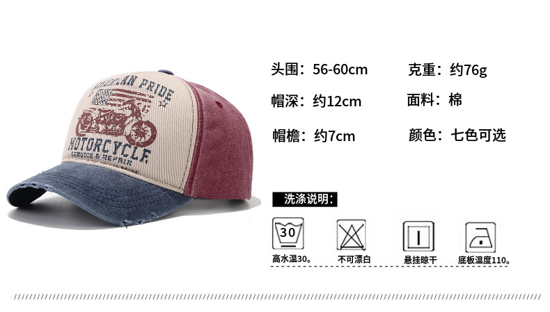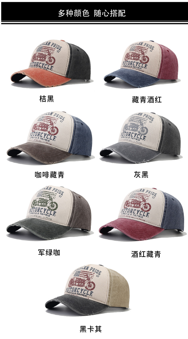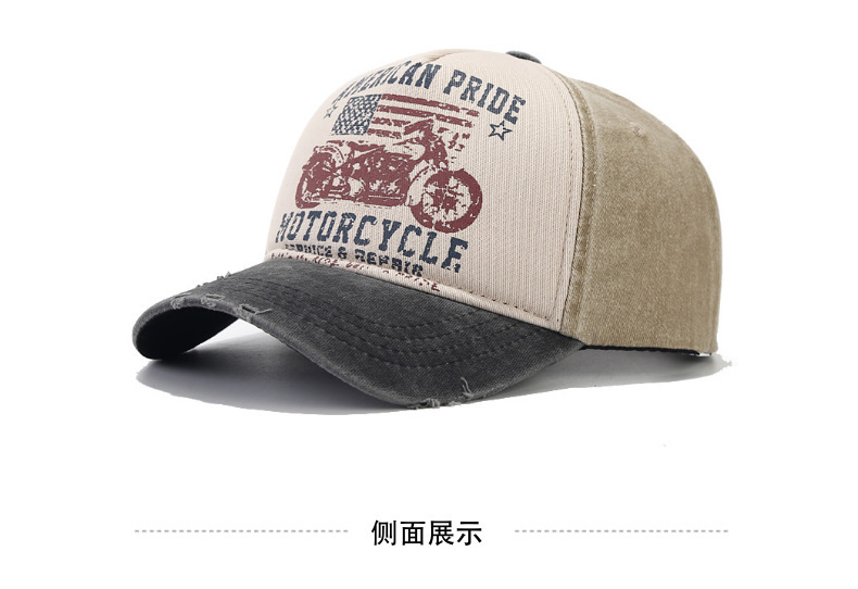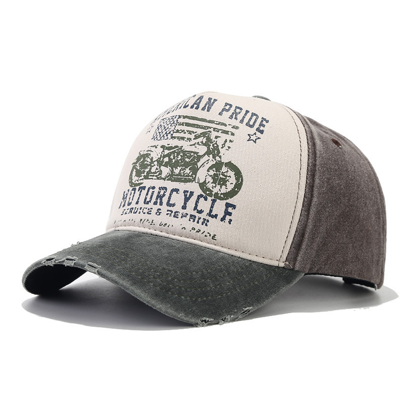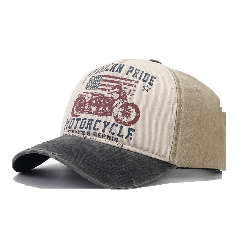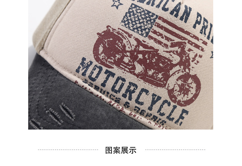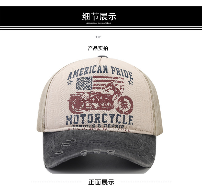 美国复古棒球帽水洗做旧印花鸭舌帽摩托车国旗卡车司机棒球帽