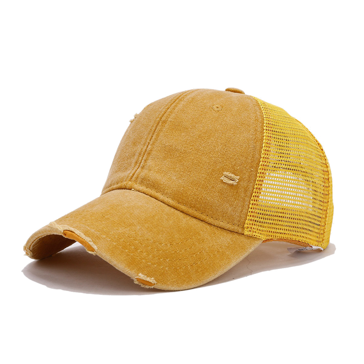 欧美时尚破洞棒球帽纯棉水洗软顶网眼鸭舌帽男夏季防晒户外帽子