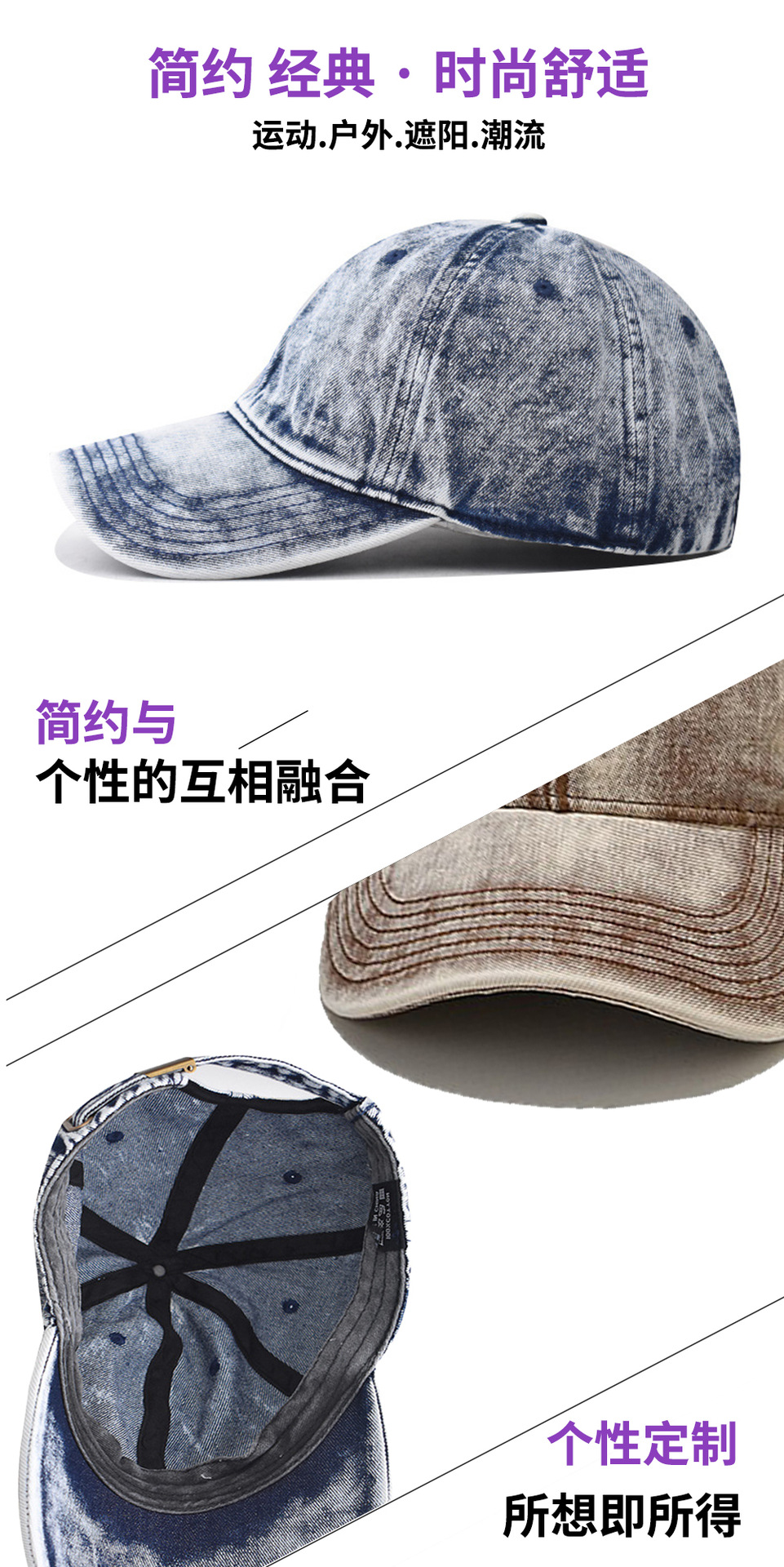 欧美牛仔帽子男士个性街头水洗纯色光板棒球帽复古嘻哈鸭舌帽批发