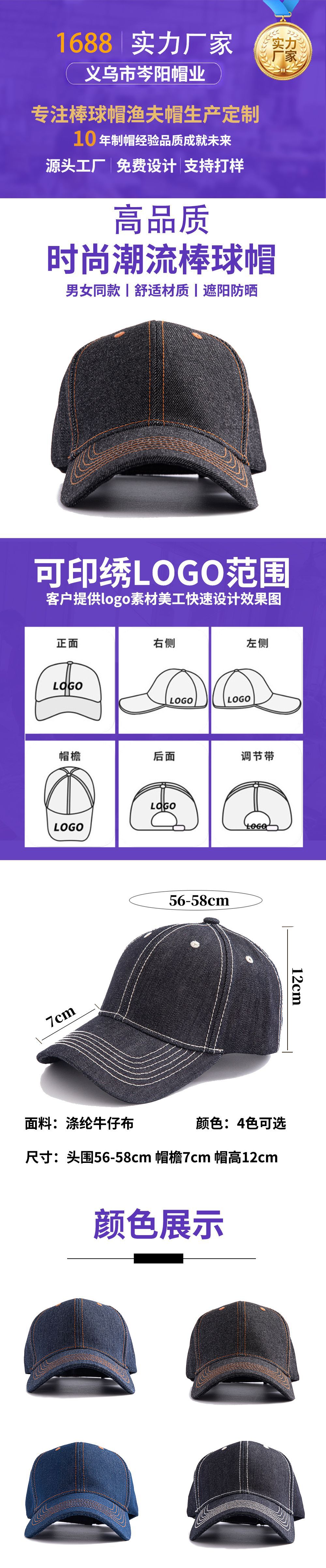 韩版棒球帽光版水洗牛仔帽防晒遮阳帽女士休闲鸭舌帽高档帽子批发
