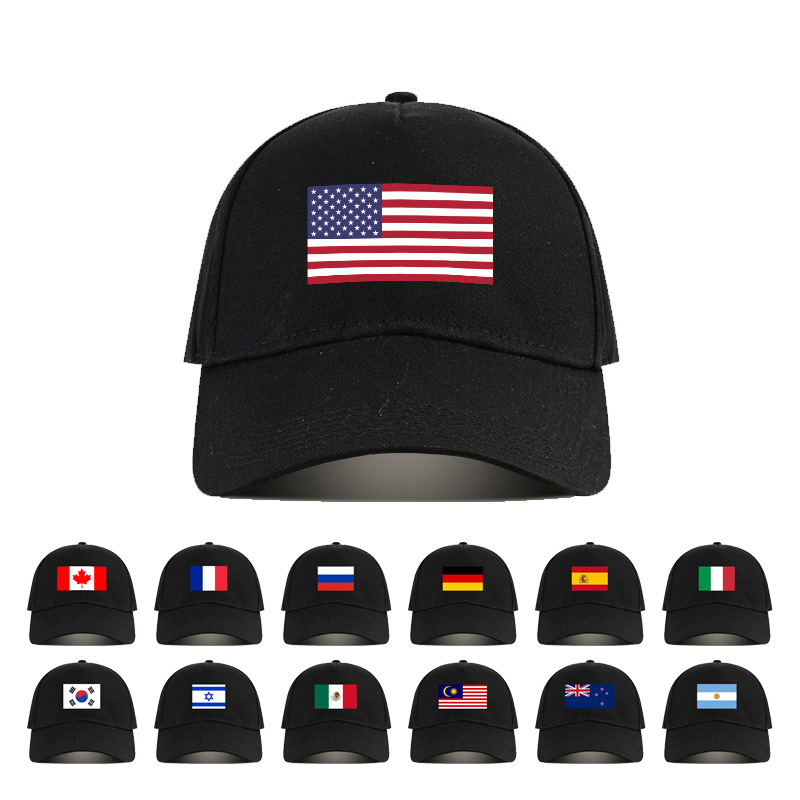 跨境印刷国旗棒球帽美国韩国法国纯棉棒球帽速卖通国旗竞选帽定制