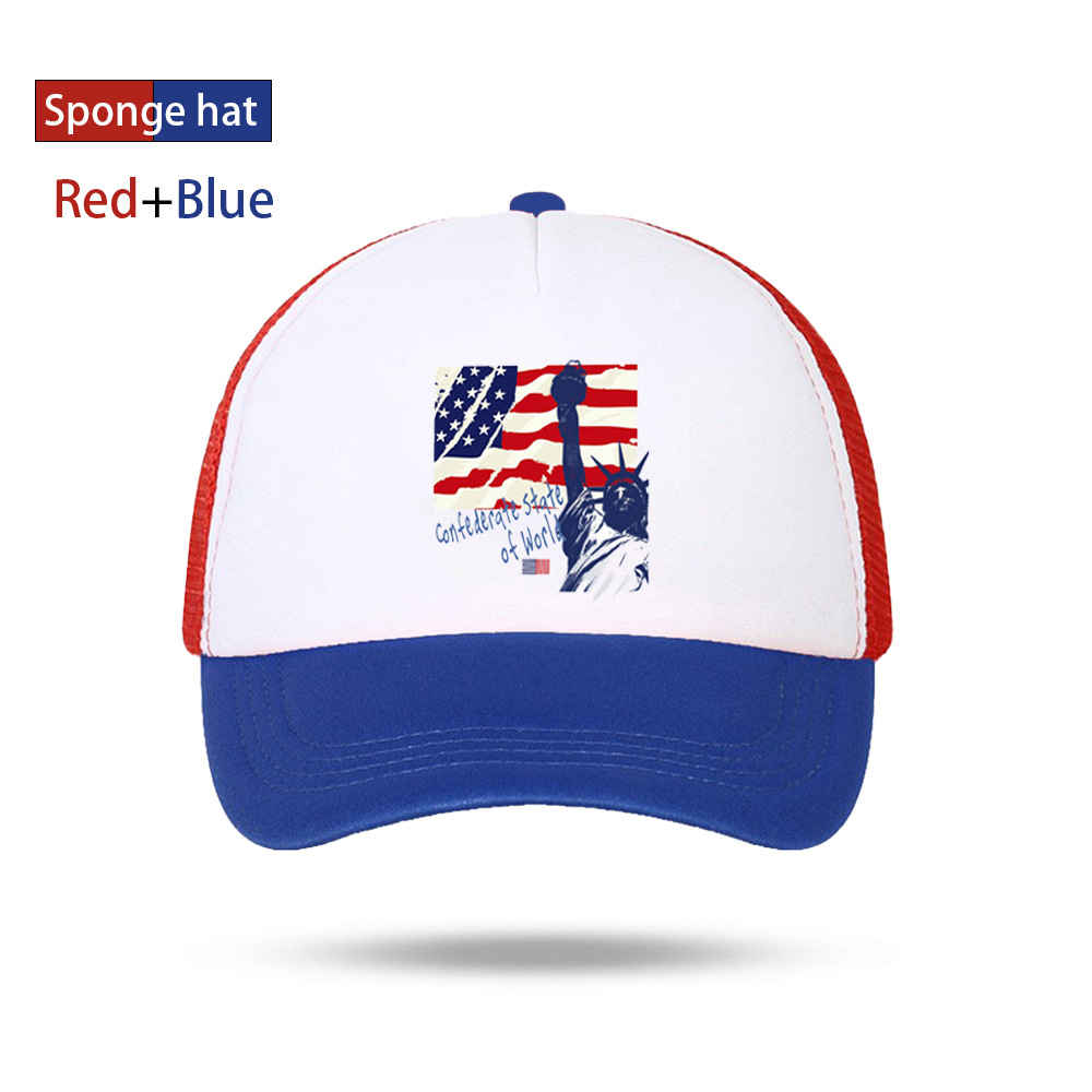 跨境USA美国国旗棒球帽夏季遮阳海绵鸭舌帽拼接撞色美国帽子代发