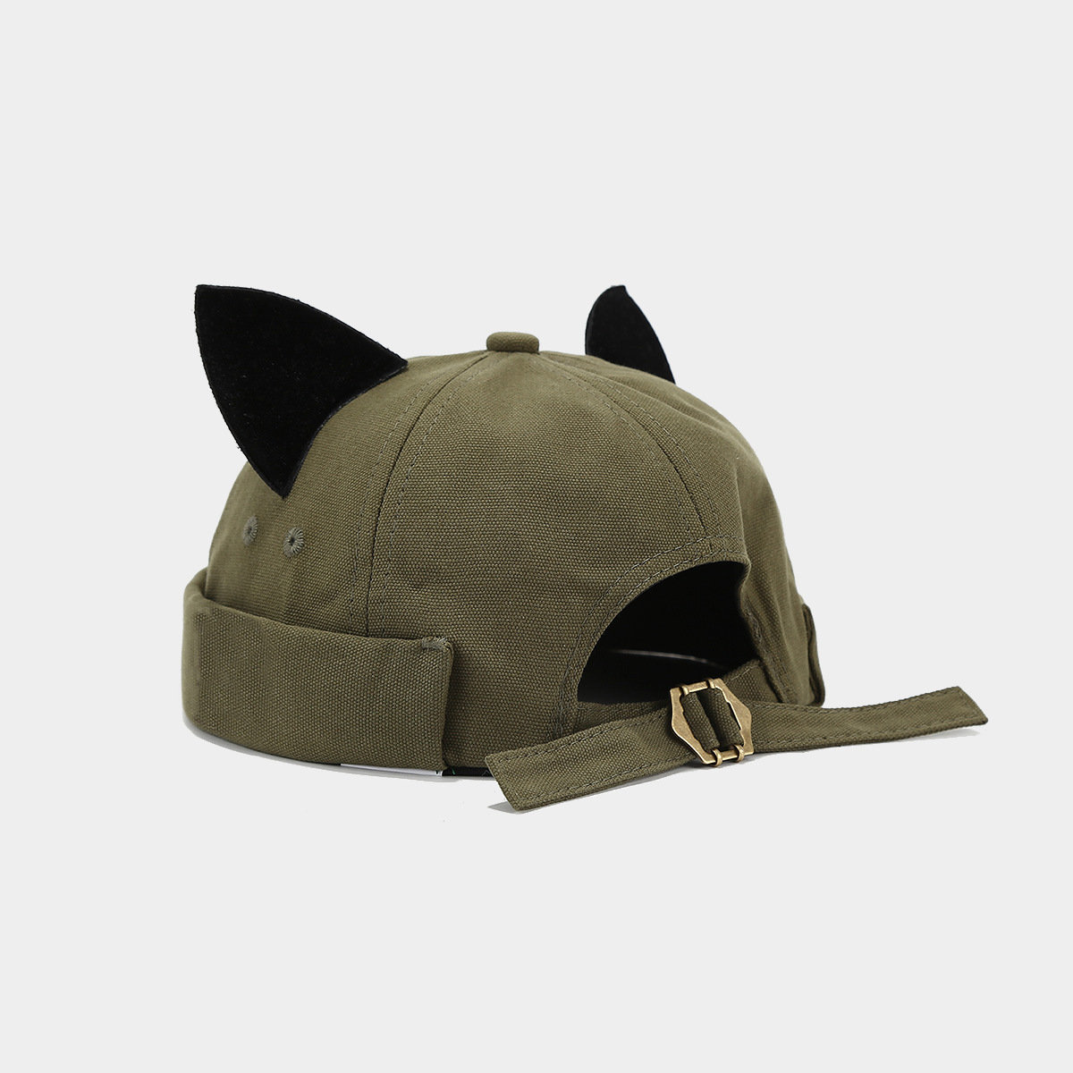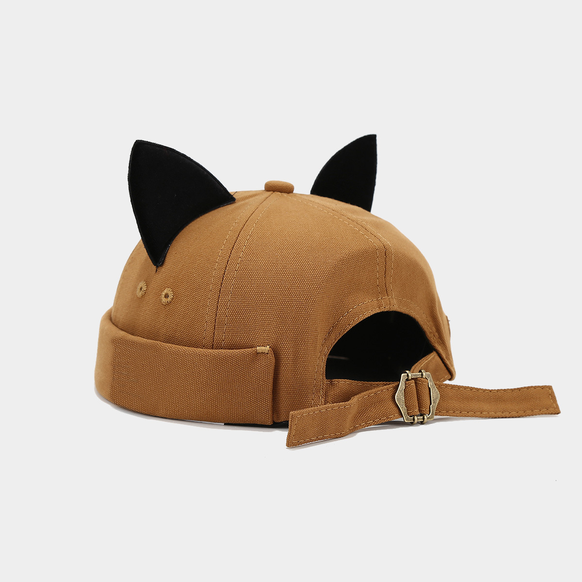 日系新款可爱百搭猫耳朵瓜皮帽女夏季韩版无檐圆顶雅痞帽潮地主帽