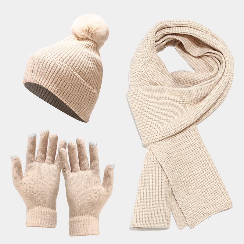 秋冬新款女士针织帽围巾手套三件套户外加厚保暖毛球毛线帽子套装