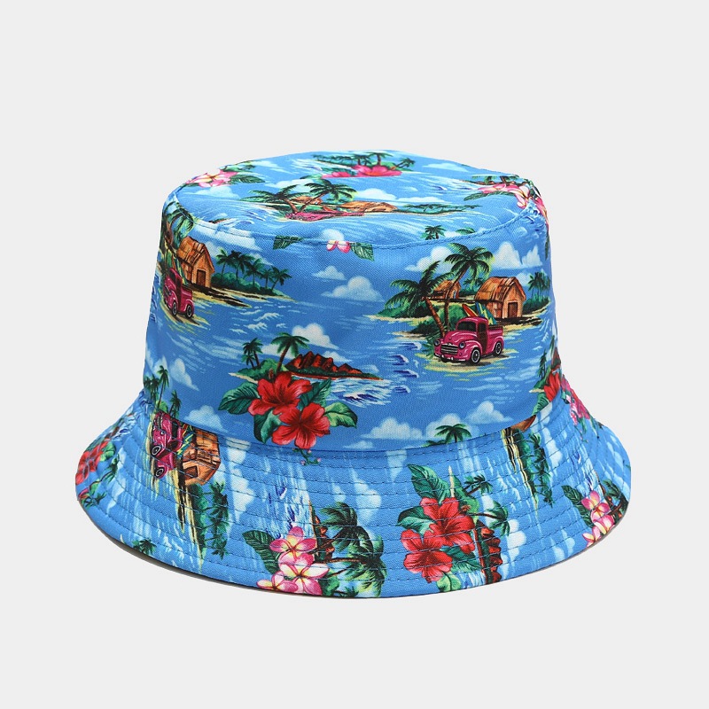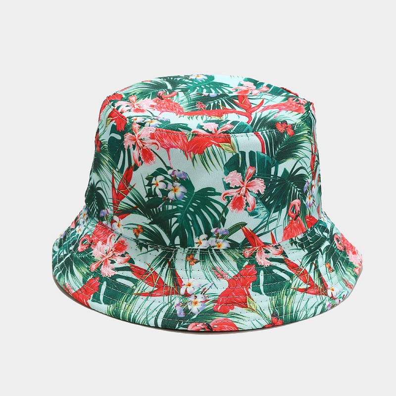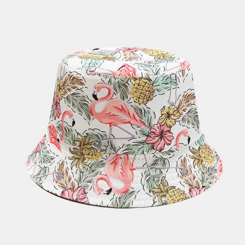 亚马逊新款火烈鸟图案双面盆帽女户外防晒可折叠太阳帽春夏渔夫帽