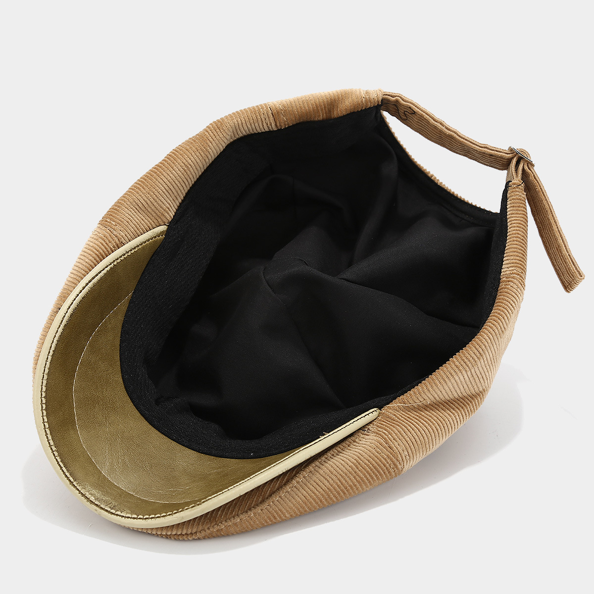 日系文艺复古灯芯绒八角帽可调节女潮韩版情侣帽大头围鸭舌帽秋冬