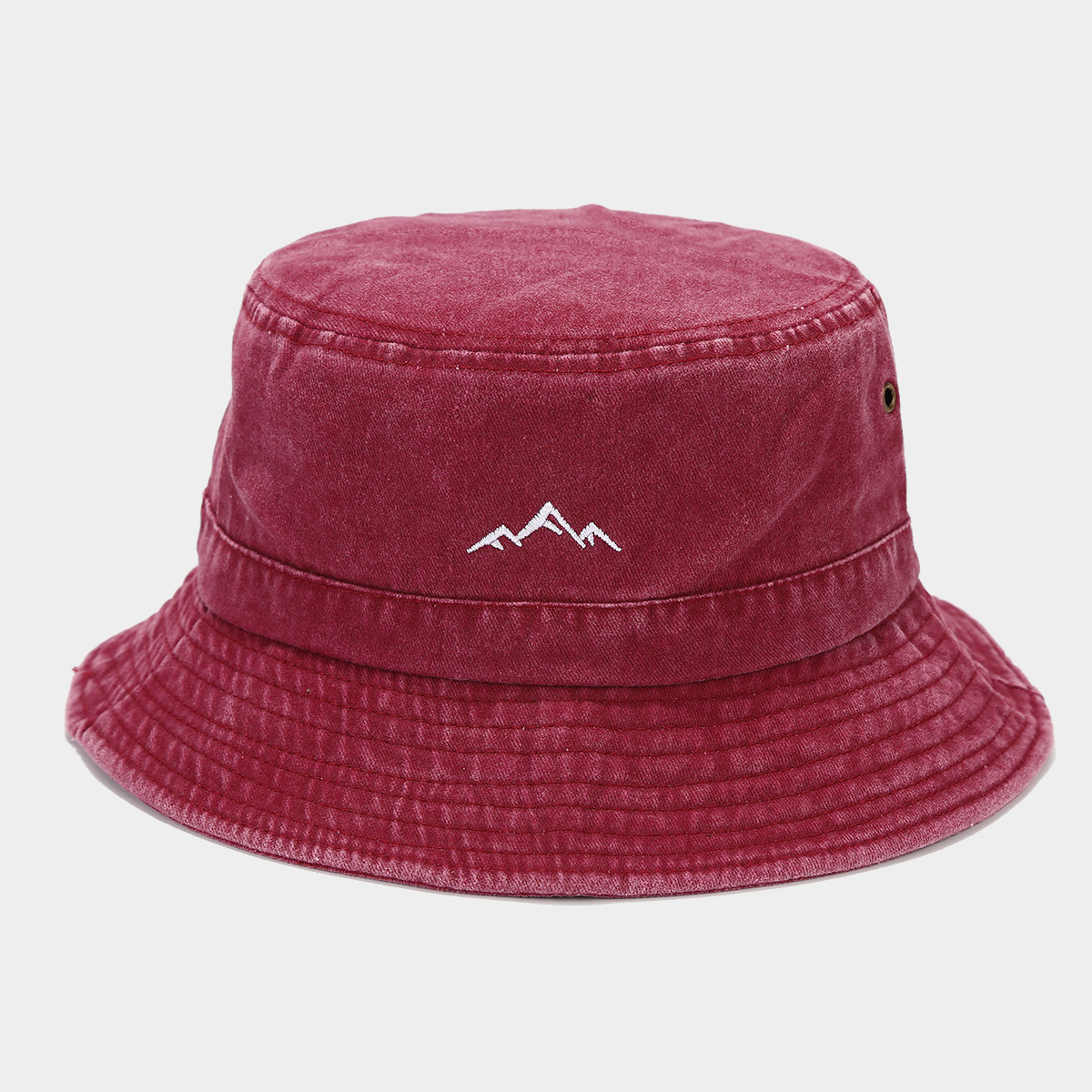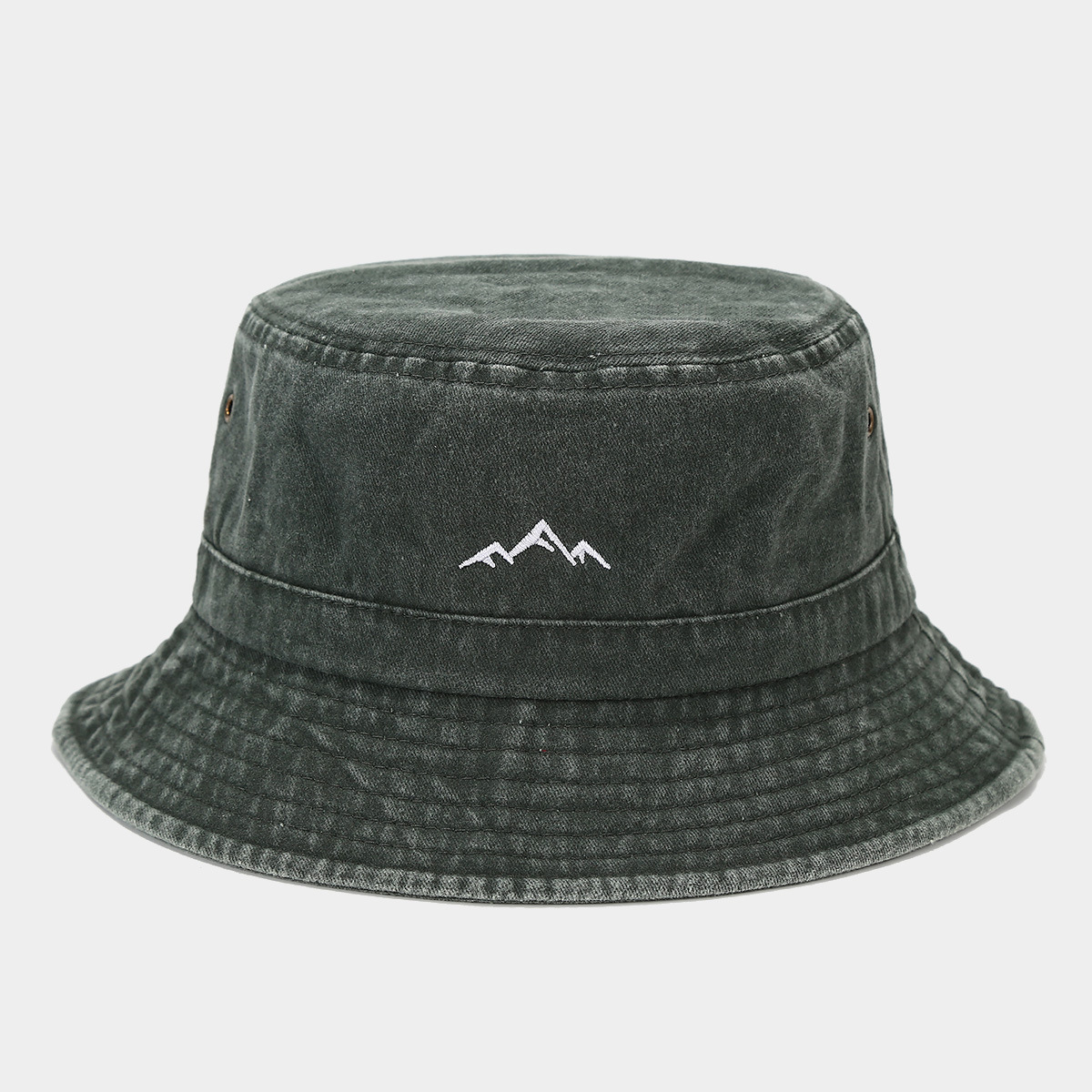 欧美复古山峰刺绣拼接渔夫帽男士户外丛林登山钓鱼帽透气女盆帽潮