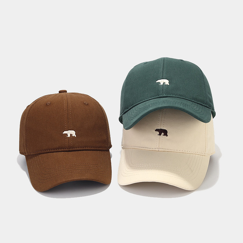 日系新款简约北极熊刺绣棒球帽子女韩版春夏季软顶情侣百搭鸭舌帽