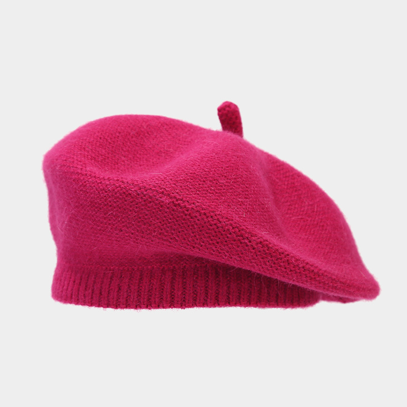 韩版时尚新款光板针织贝雷帽女士潮加厚保暖兔毛画家帽日系南瓜帽