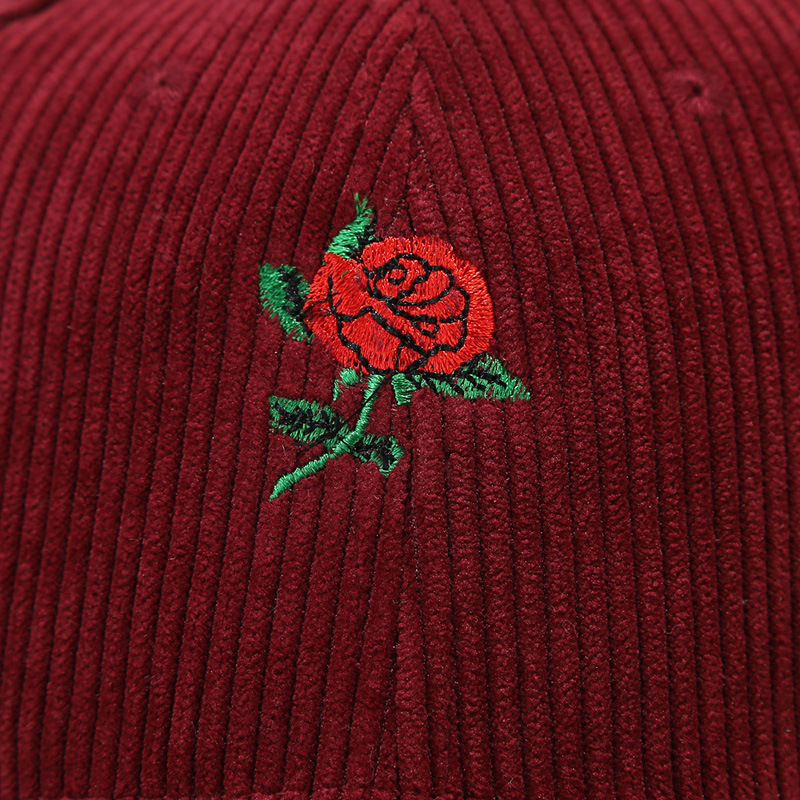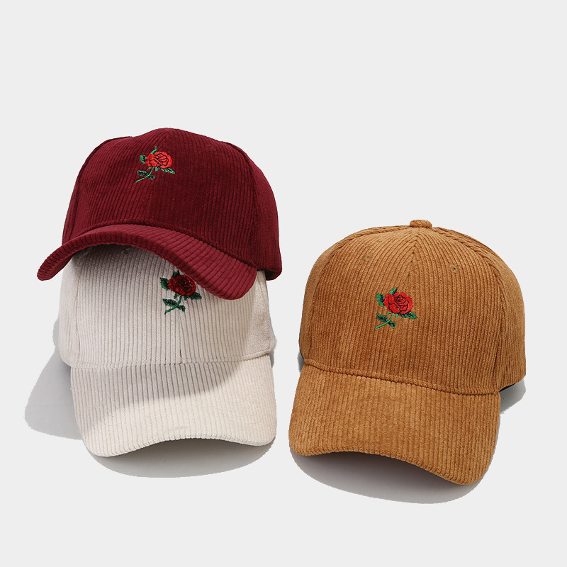 情人节时尚玫瑰花刺绣灯芯绒棒球帽女潮春季户外出游遮阳鸭舌帽子