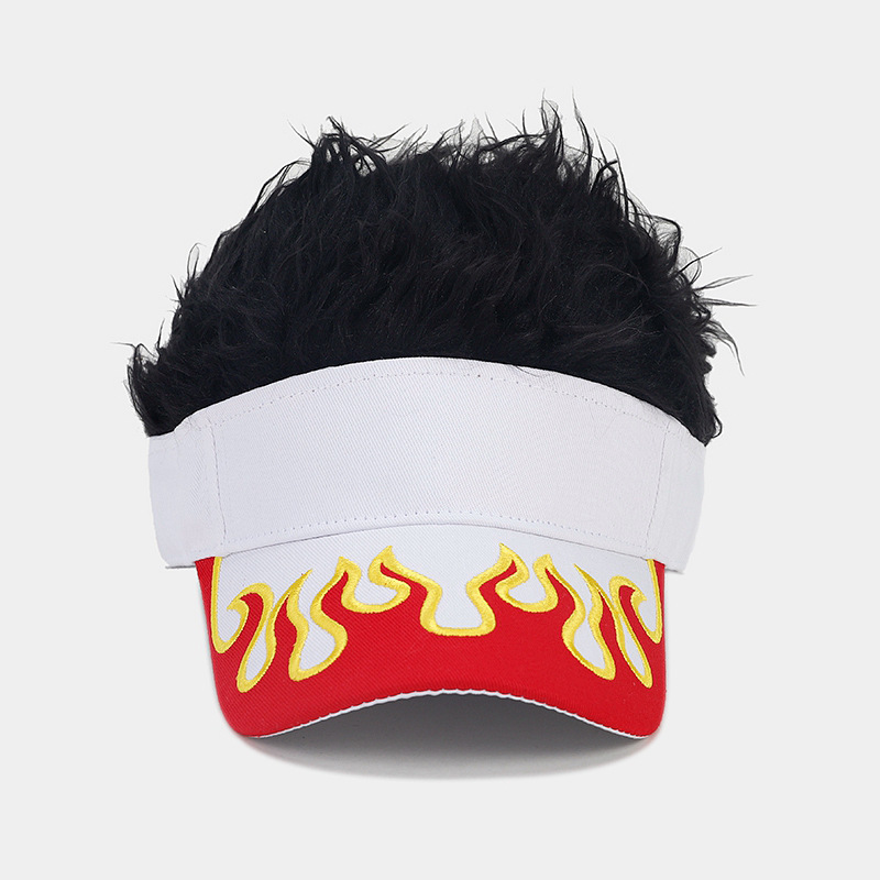 欧美时尚火图案绣花假发棒球帽四季戴时尚潮流男女鸭舌帽潮遮阳帽