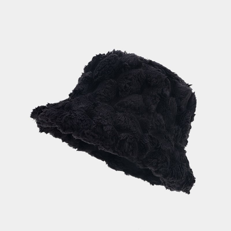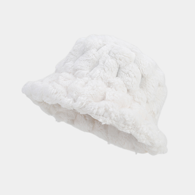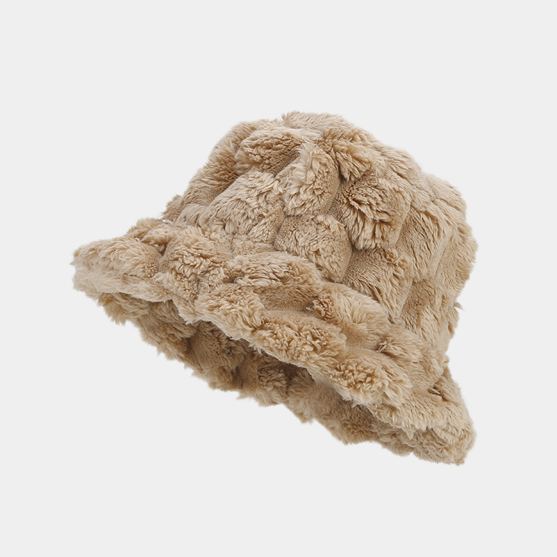 秋冬新款文艺复古菠萝纹仿兔毛渔夫帽女潮秋冬季户外保暖遮阳盆帽
