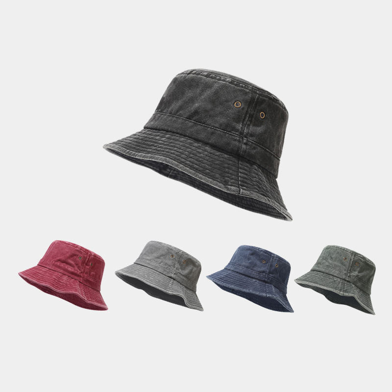 欧美新款水洗做旧渔夫帽男士休闲拼接户外运动登山帽女简约太阳帽