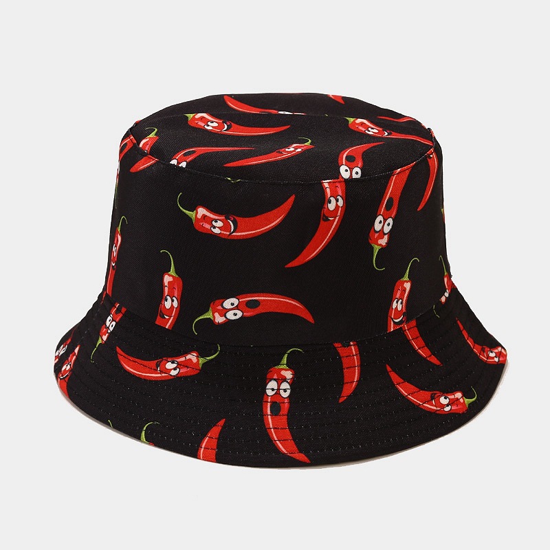 创意新款辣椒图案双面戴渔夫帽男女户外出游防晒遮阳帽休闲盆帽潮