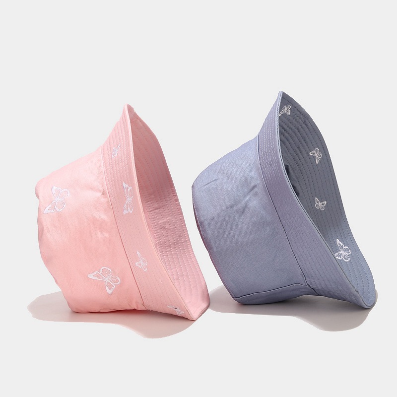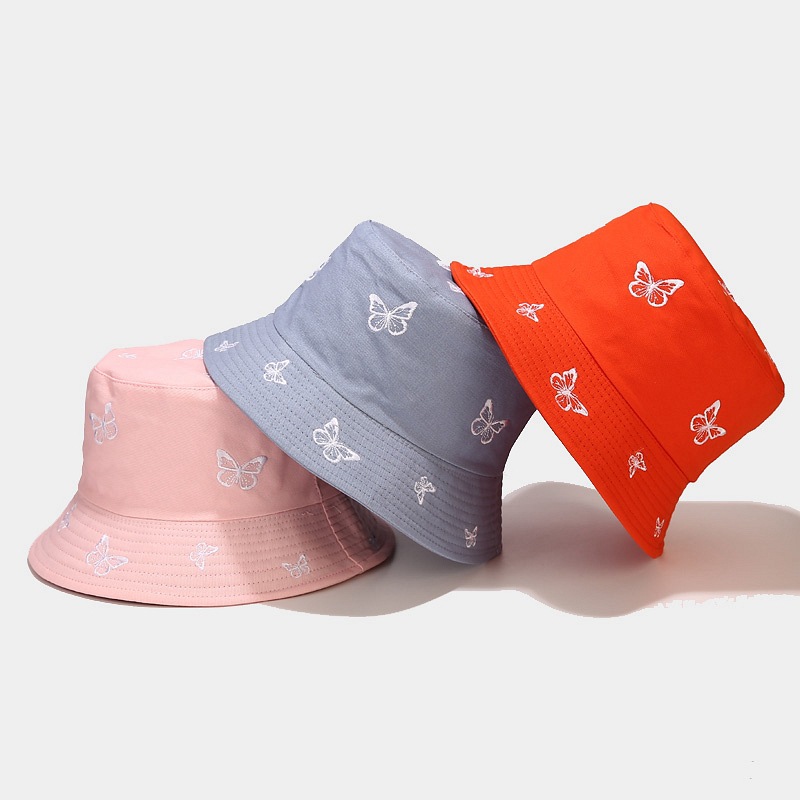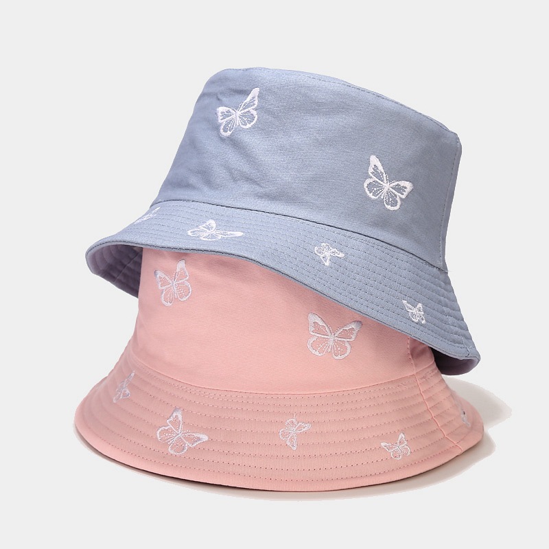 2024新款蝴蝶刺绣双面戴渔夫帽男女日系小清新防晒遮阳帽网红盆帽