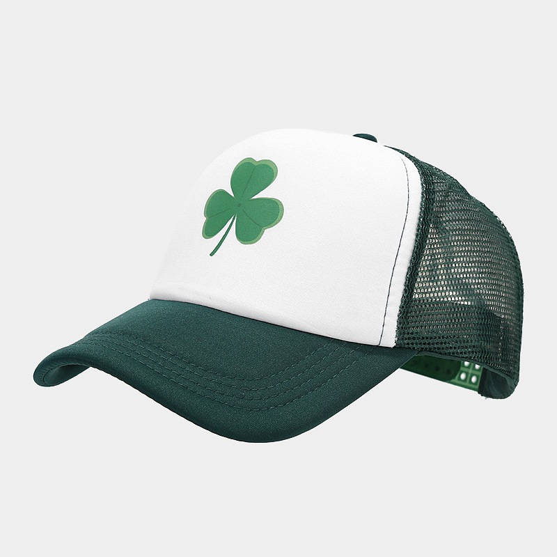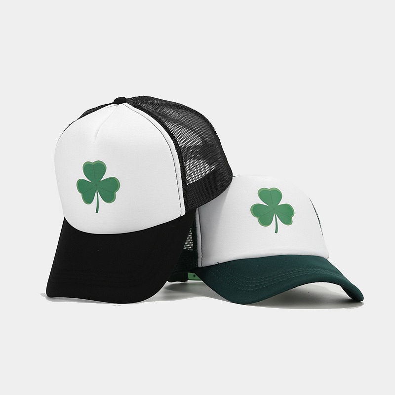 新款时尚三叶草图案卡车司机帽子男夏季户外透气防晒网眼棒球帽潮