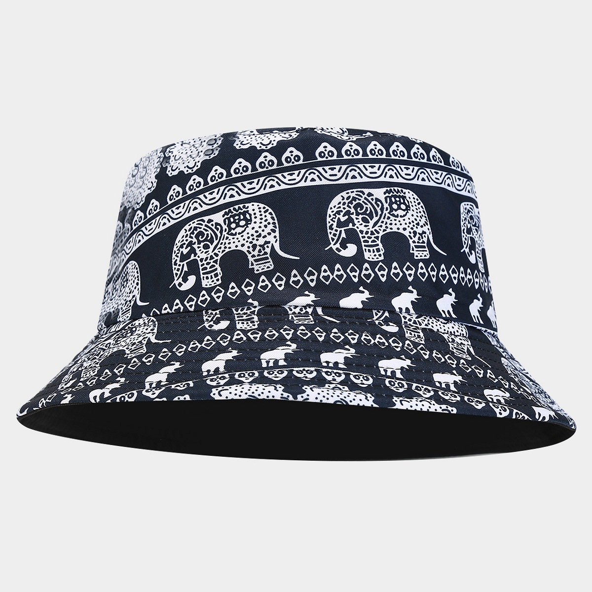 跨境电商热卖大象满印双面戴渔夫帽夏季户外男女休闲遮阳帽情侣潮