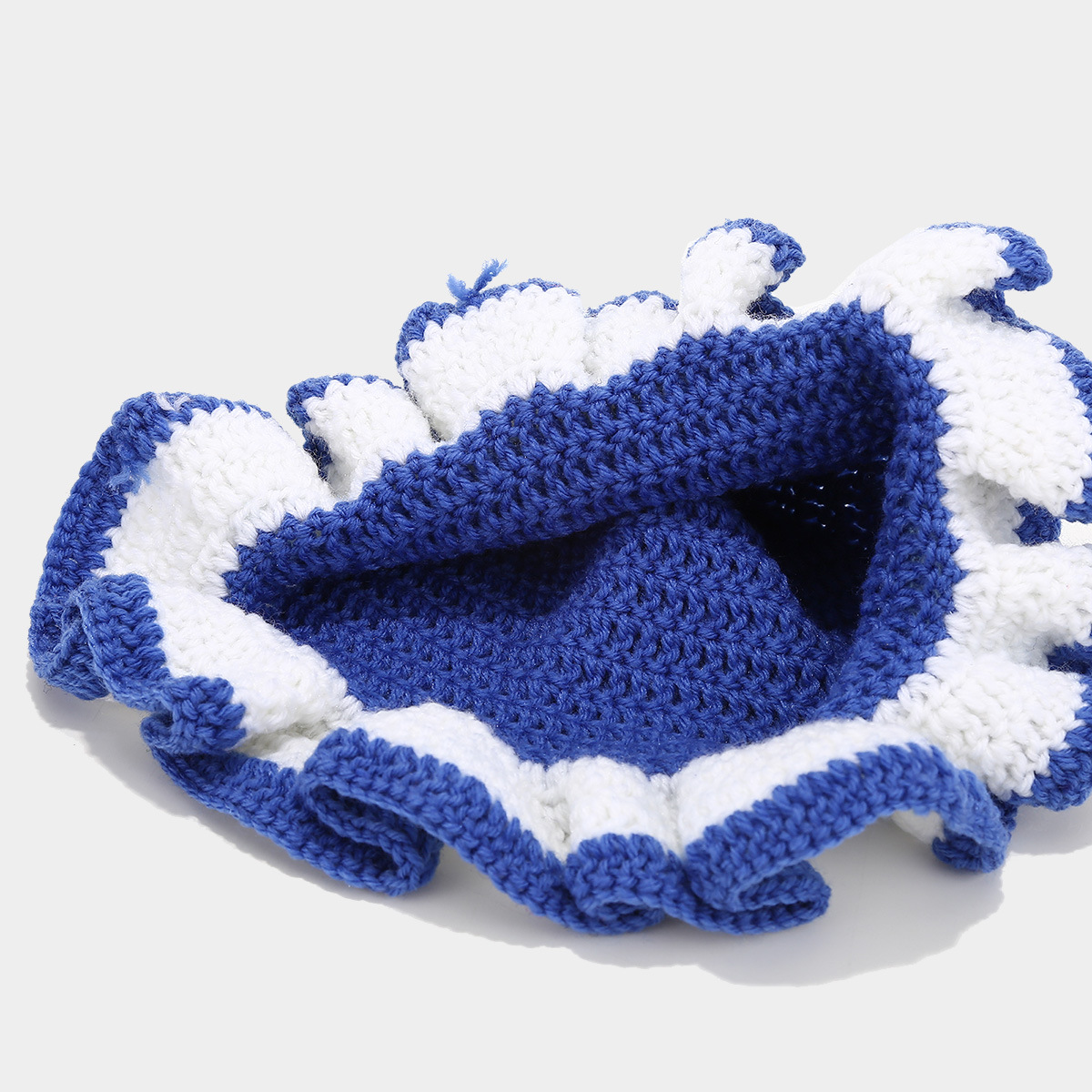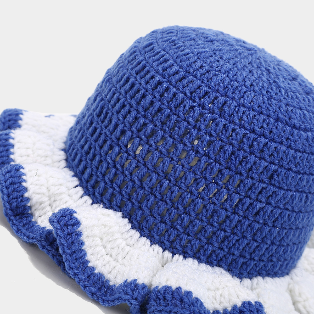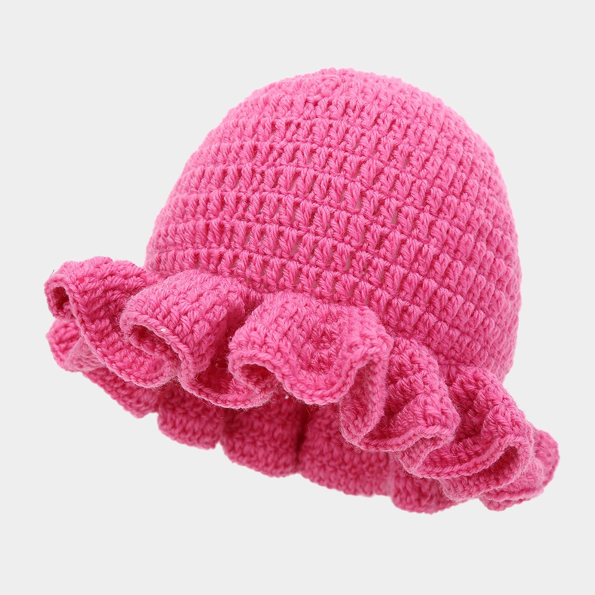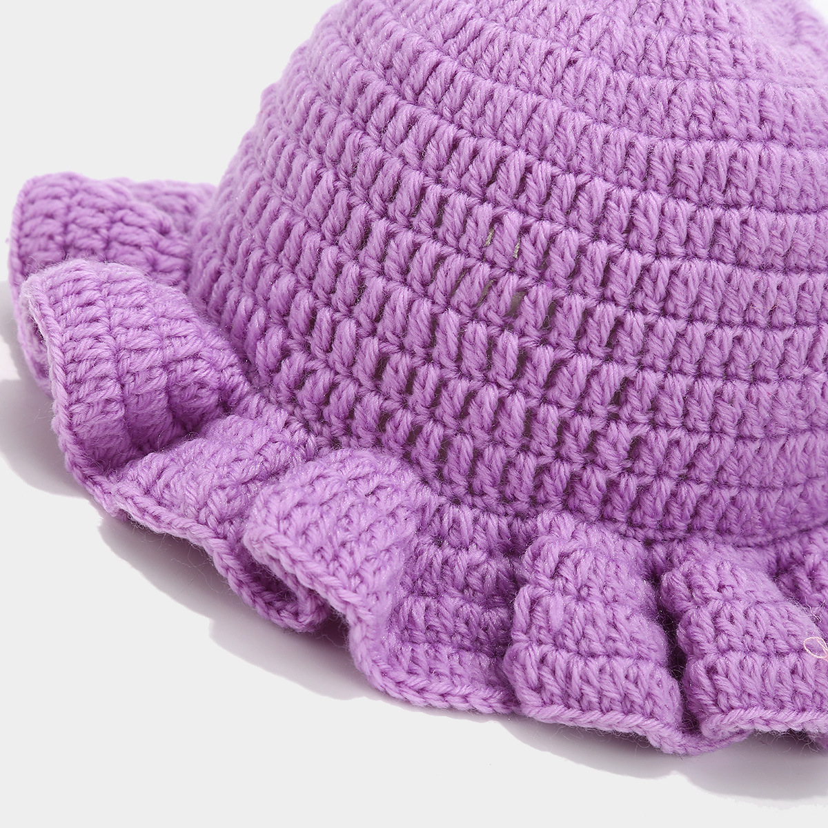 亚马逊手工钩针褶边毛线帽时尚彩色斗笠帽跨境电商男女荷叶边帽子