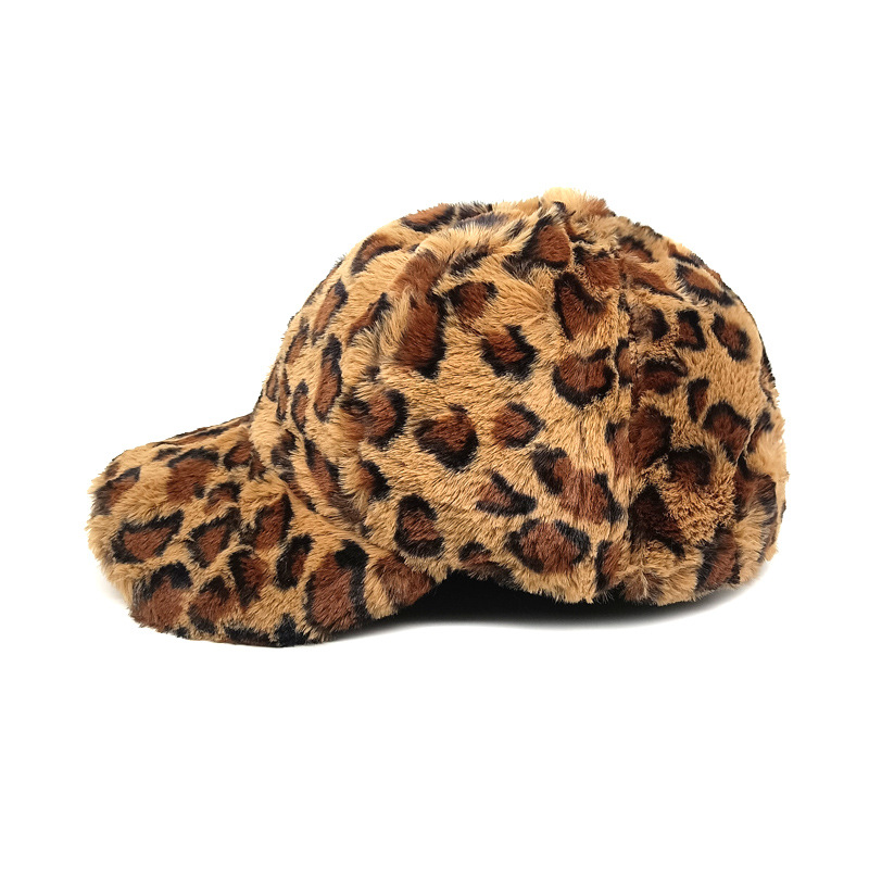 冬季豹纹图案棒球帽新款保暖毛绒帽子女士时尚户外百搭遮阳鸭舌帽