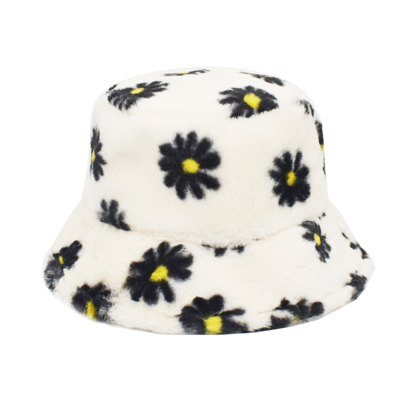 日韩秋冬新款清纯可爱雏菊印花渔夫帽女保暖加厚毛绒盆帽