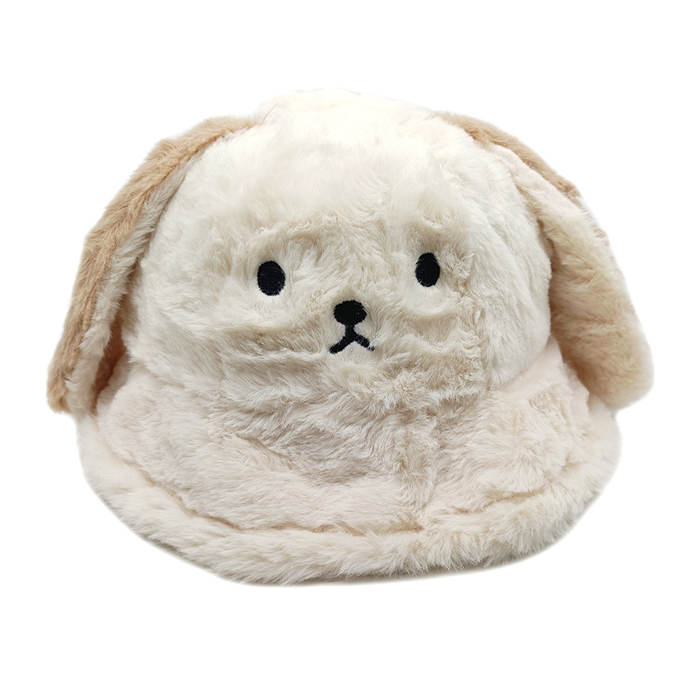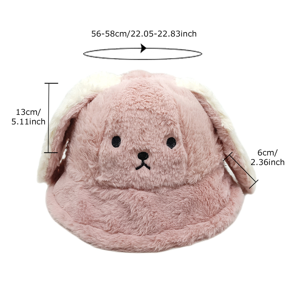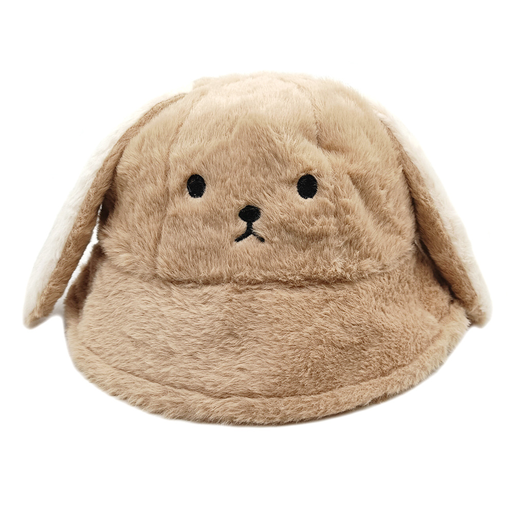 小狗耳朵渔夫帽子女秋冬韩版毛绒水桶帽可爱显脸小盆帽保暖帽学生