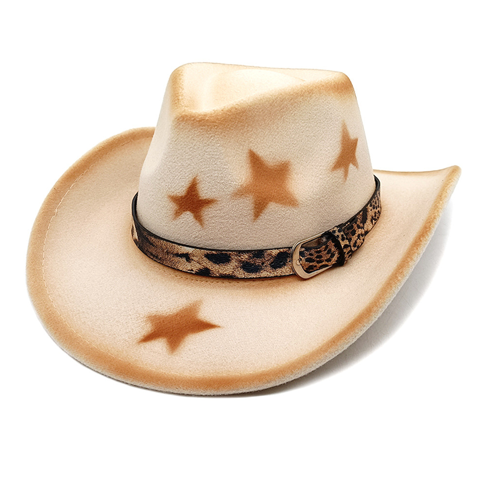 欧美西部牛仔帽时尚毛呢豹纹皮带名族风复古牛仔帽跨境藏式爵士帽