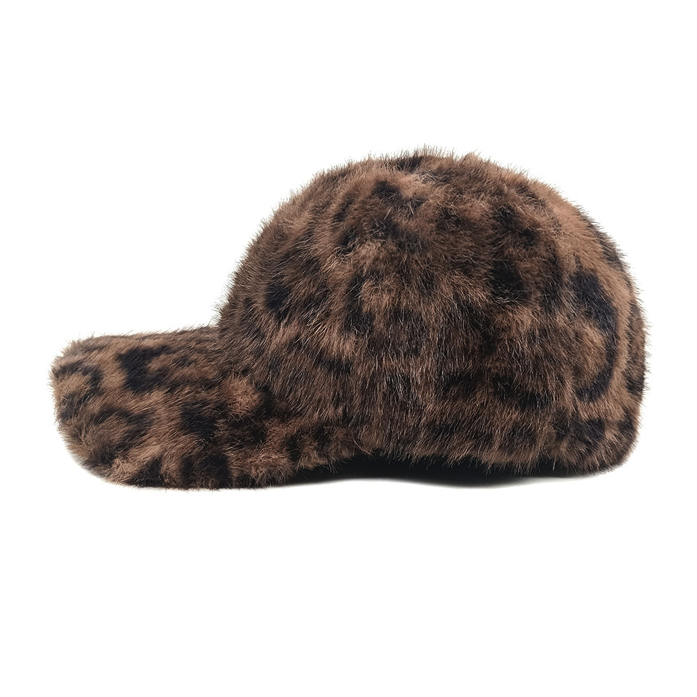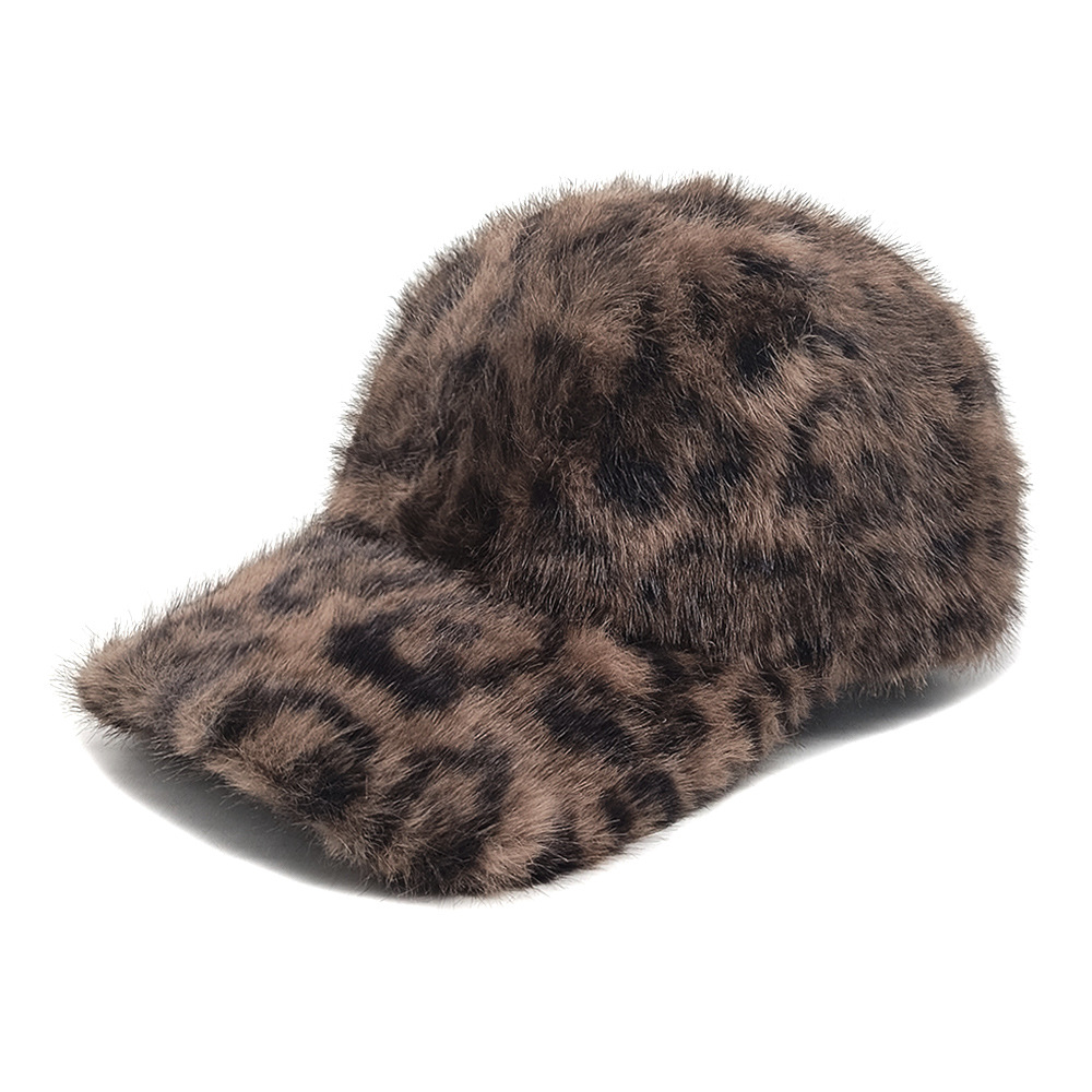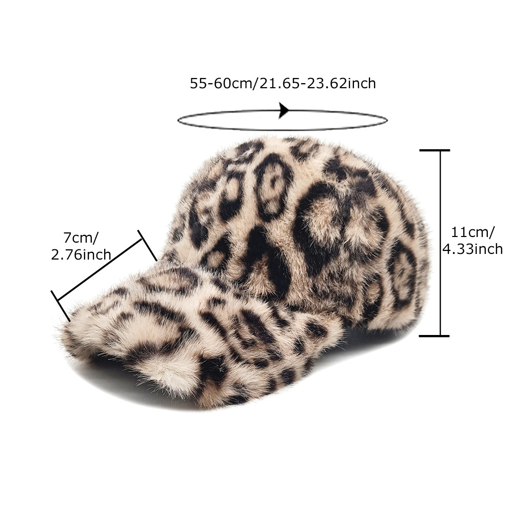 欧美新款毛绒豹纹图案保暖棒球帽子女士时尚户外百搭鸭舌帽遮阳帽