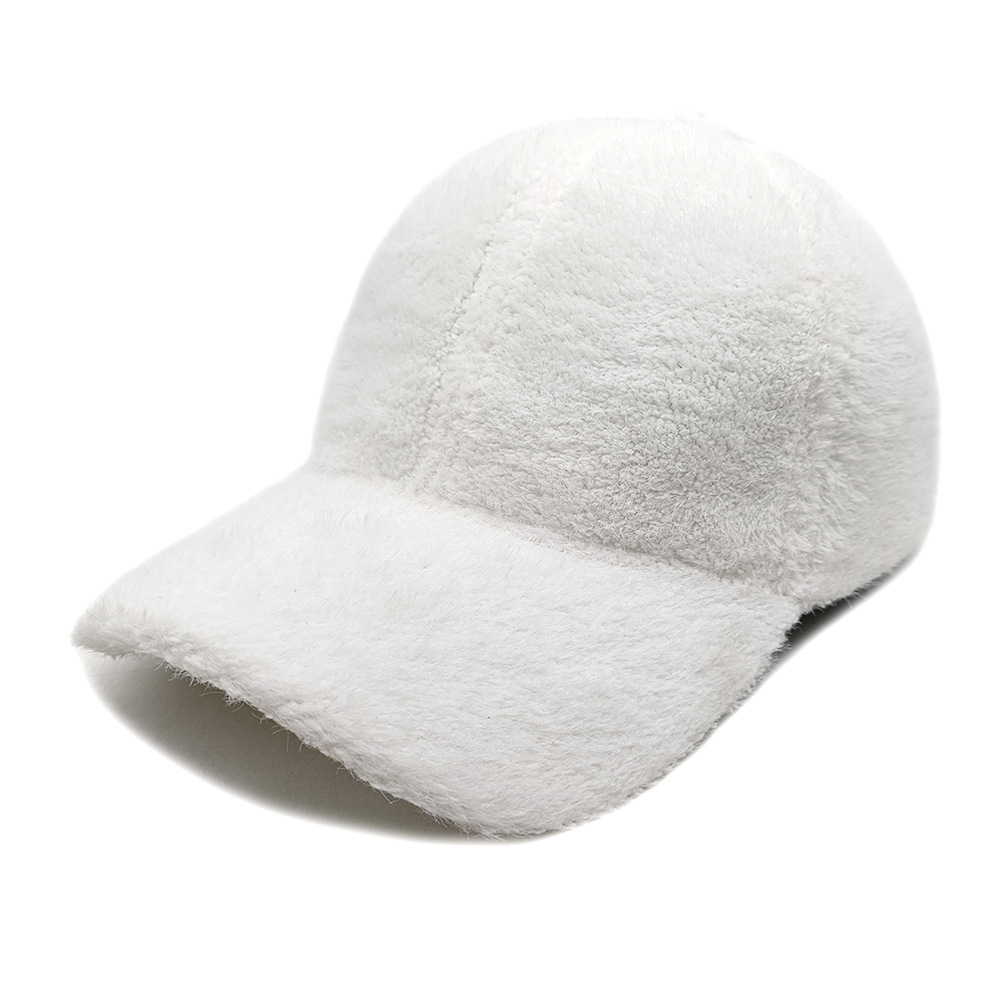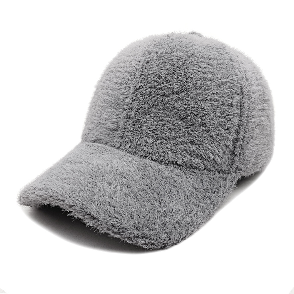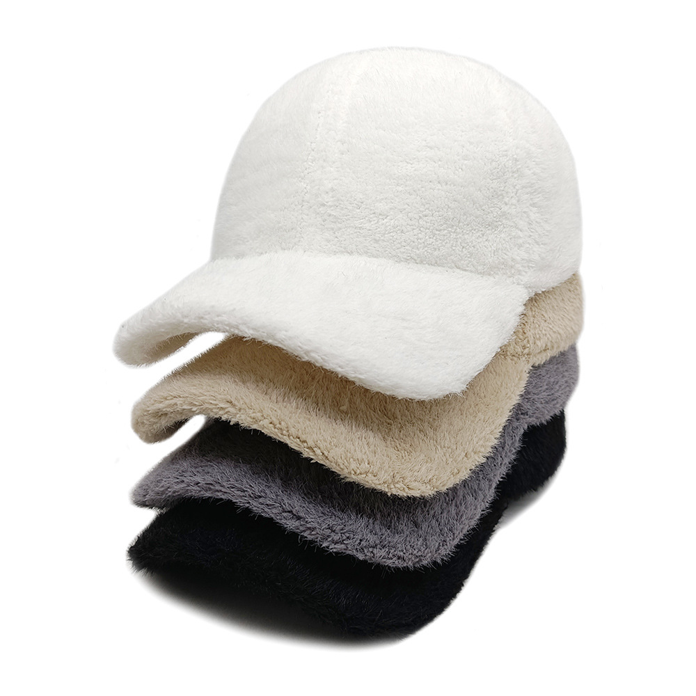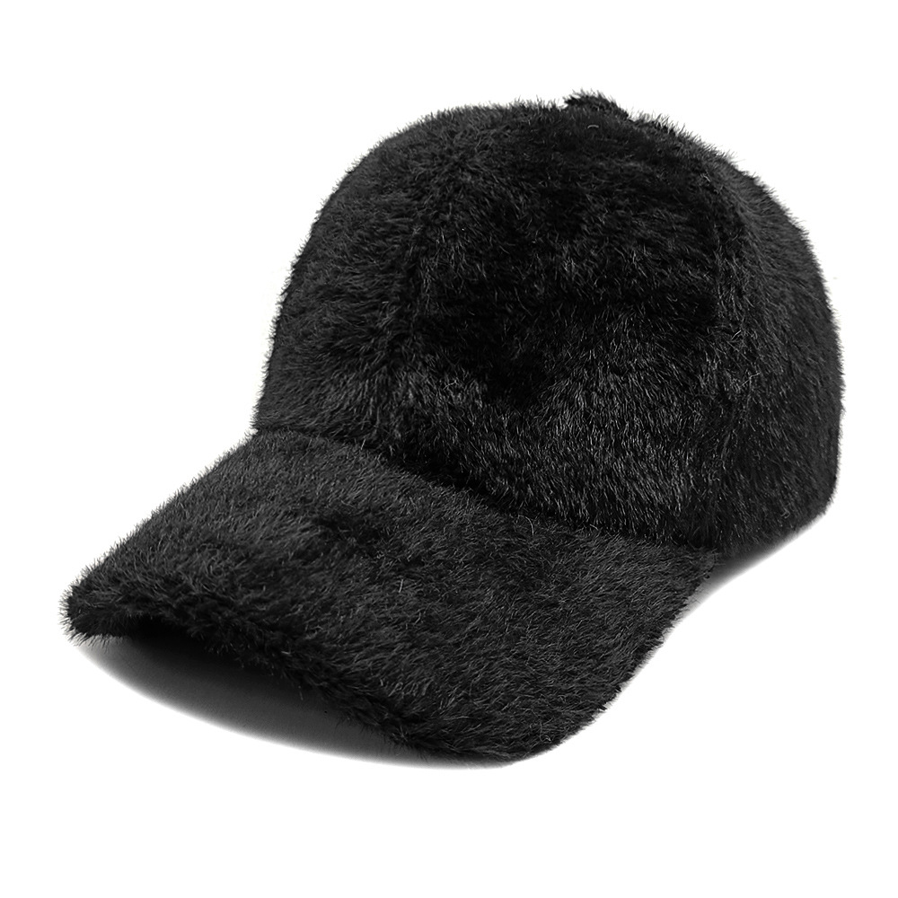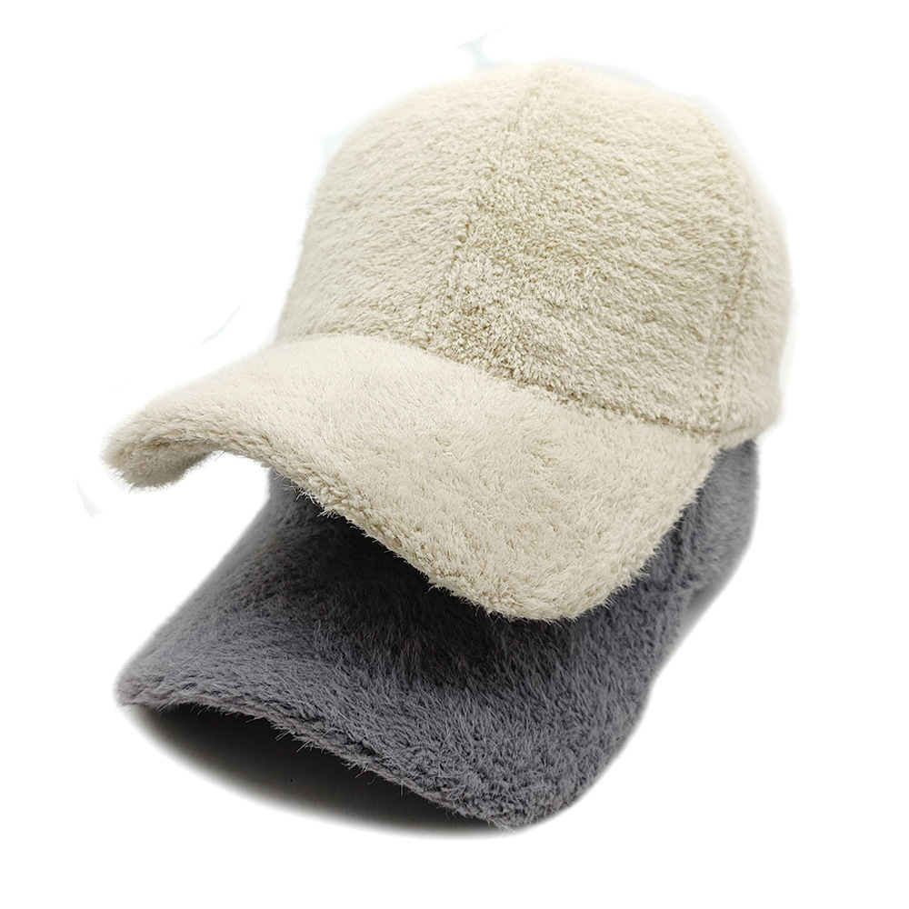 秋冬款棒球帽女士户外出行保暖鸭舌帽绒面韩版仿貂绒纯色帽子百搭