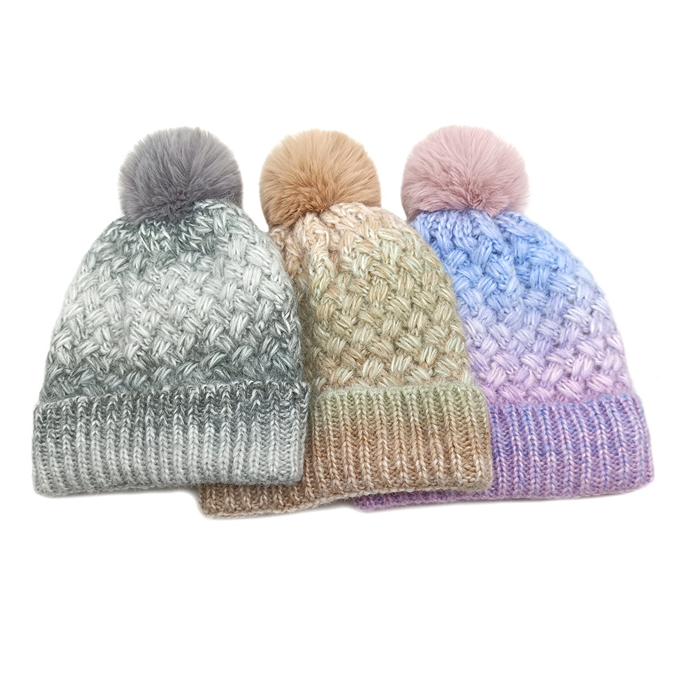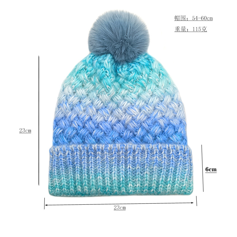 渐变色防寒毛线帽女加绒帽子欧美男秋冬加厚保暖针织帽户外套头帽
