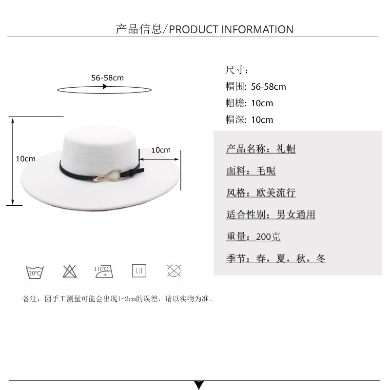 冬季时尚毛呢大檐帽子平顶帽欧美新款男女礼帽仿羊毛呢帽遮阳帽潮