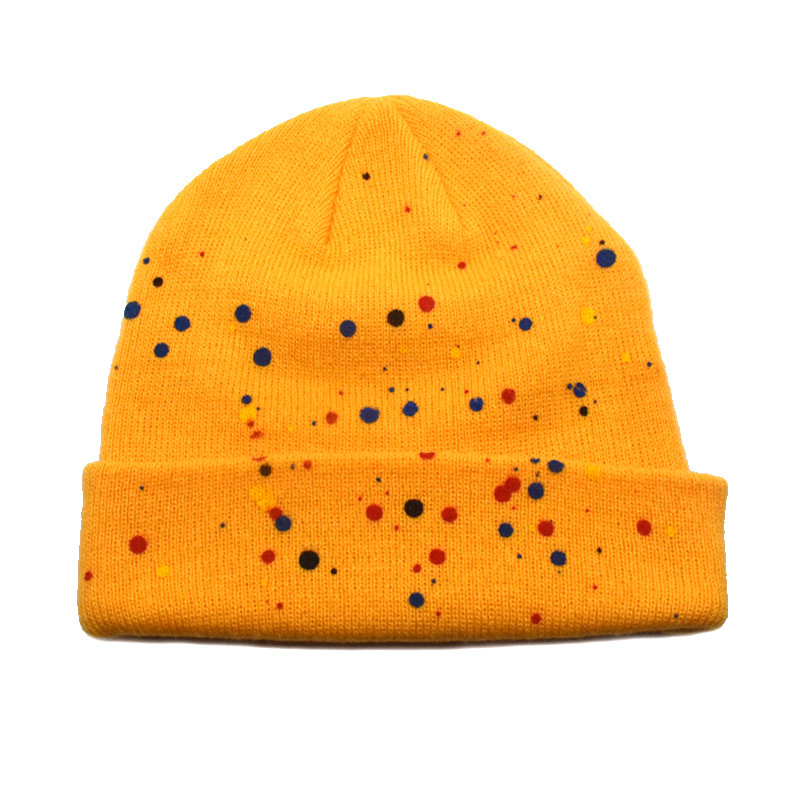 秋冬新款毛线冷帽女彩色圆点涂鸦针织帽保暖帽子男欧美时尚套头帽