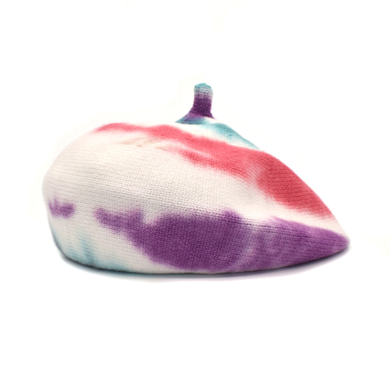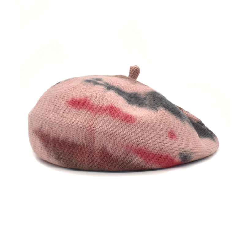 ins新款扎染针织贝雷帽 女潮 外贸冬季保暖帽 包芯纱画家帽休闲帽