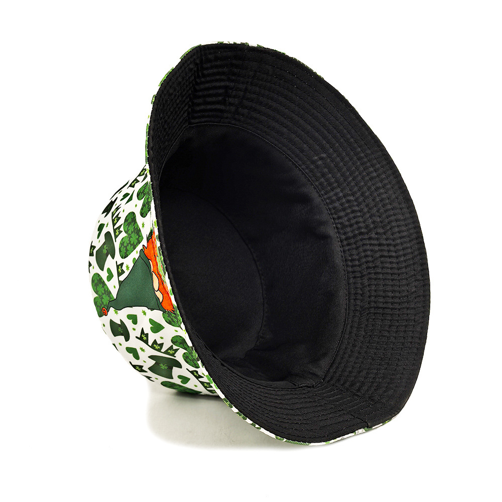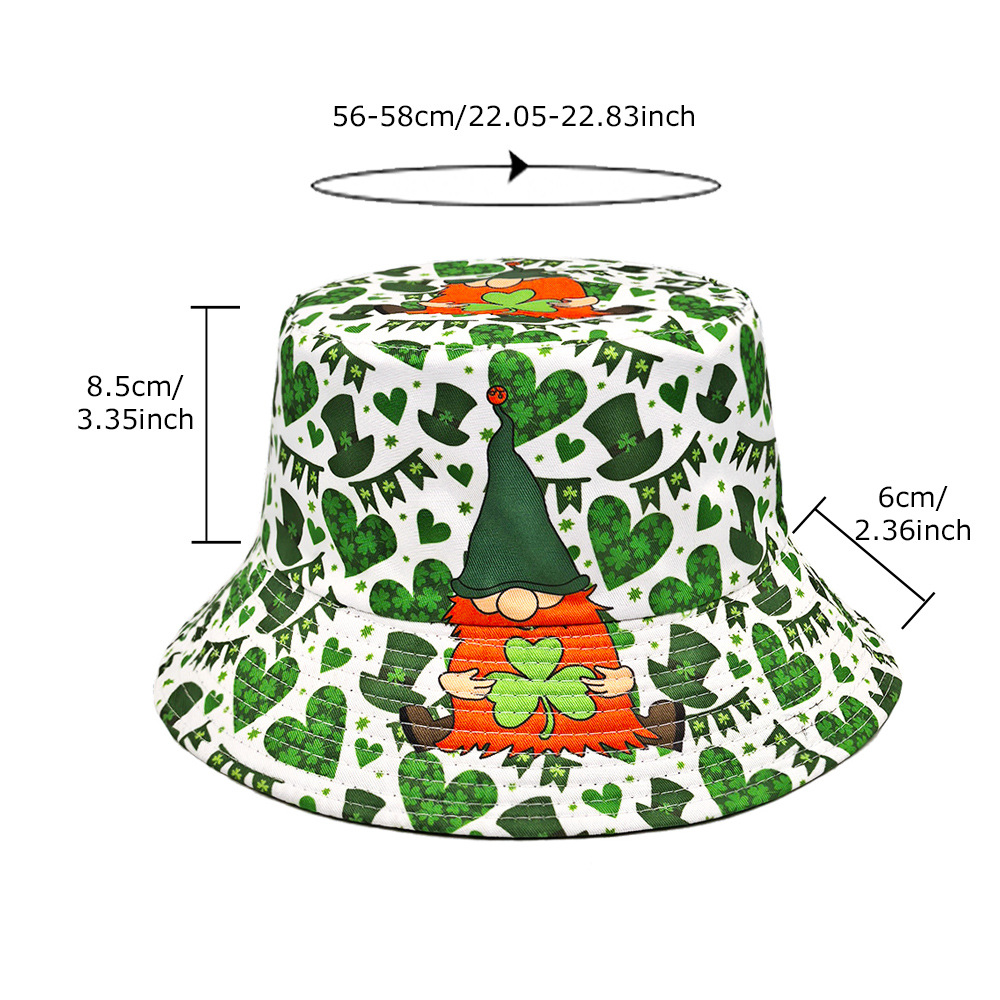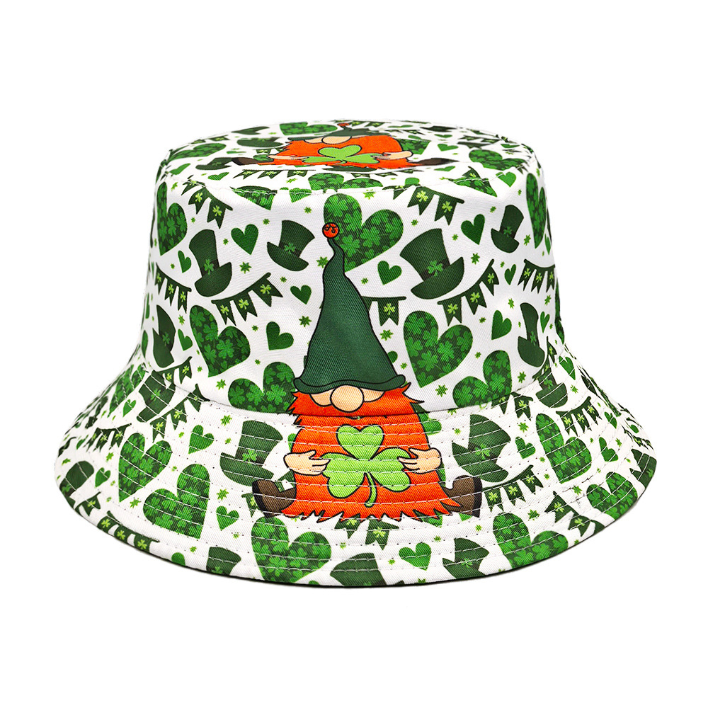 圣帕特里克节日帽子爱尔兰四叶草印花盆帽欧美女遮阳太阳帽渔夫帽