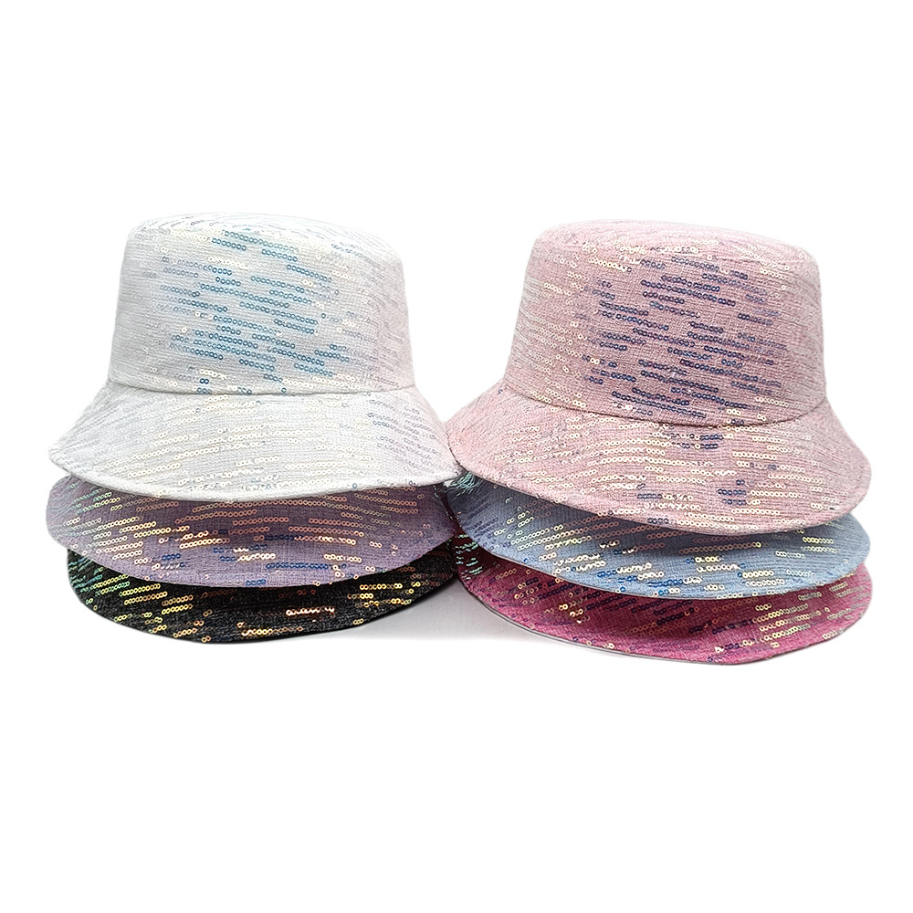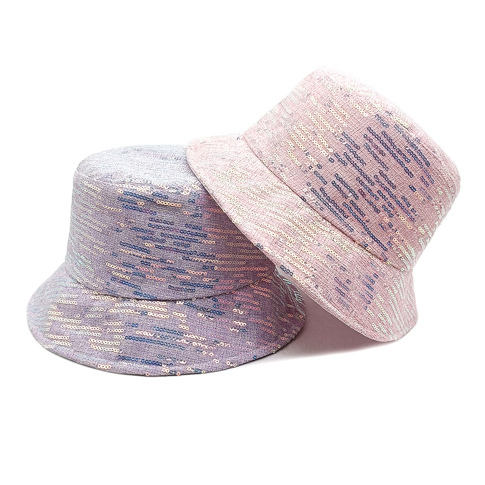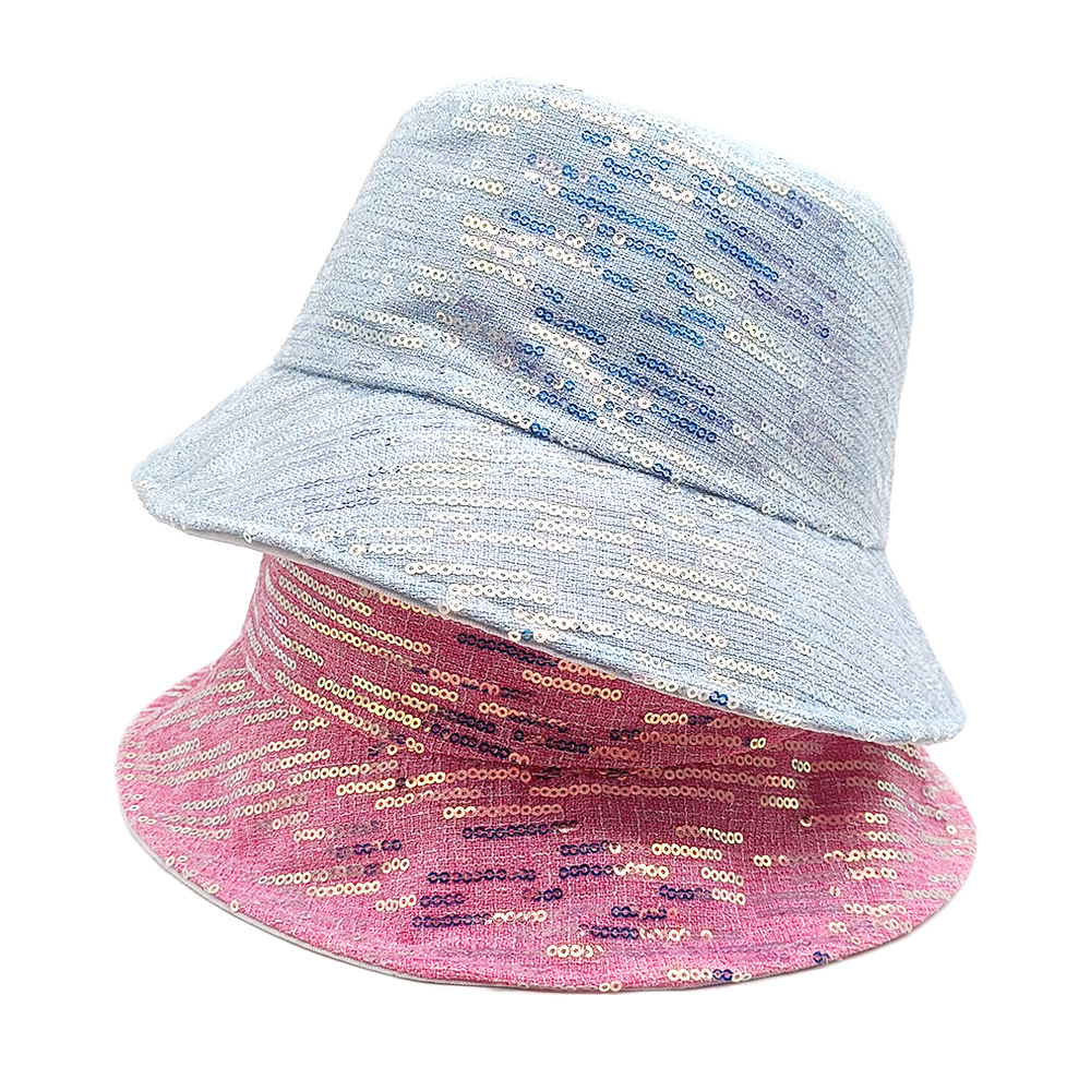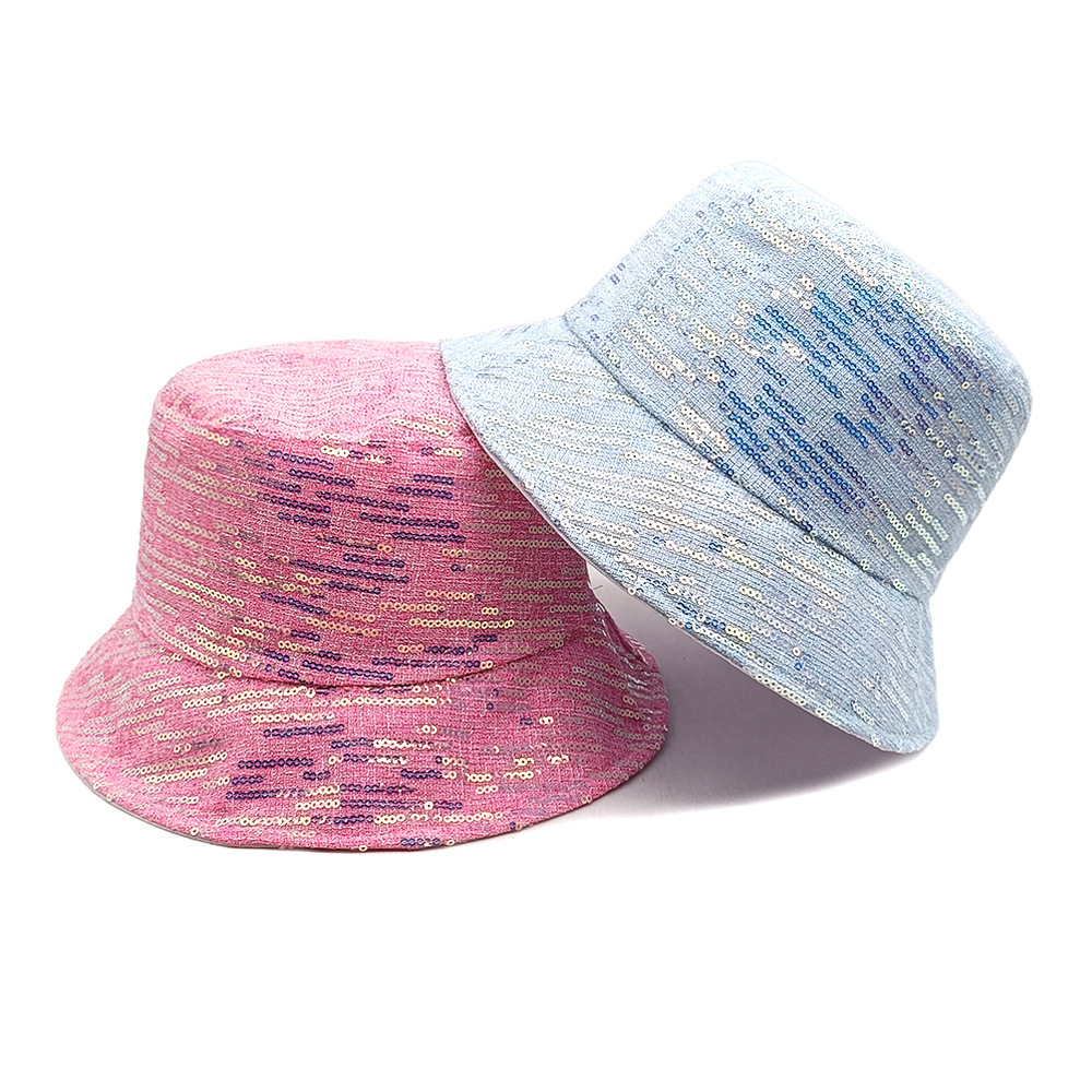 亚马逊新款亮片渔夫帽个性防晒盆帽女双面戴春季户外遮阳帽水桶帽