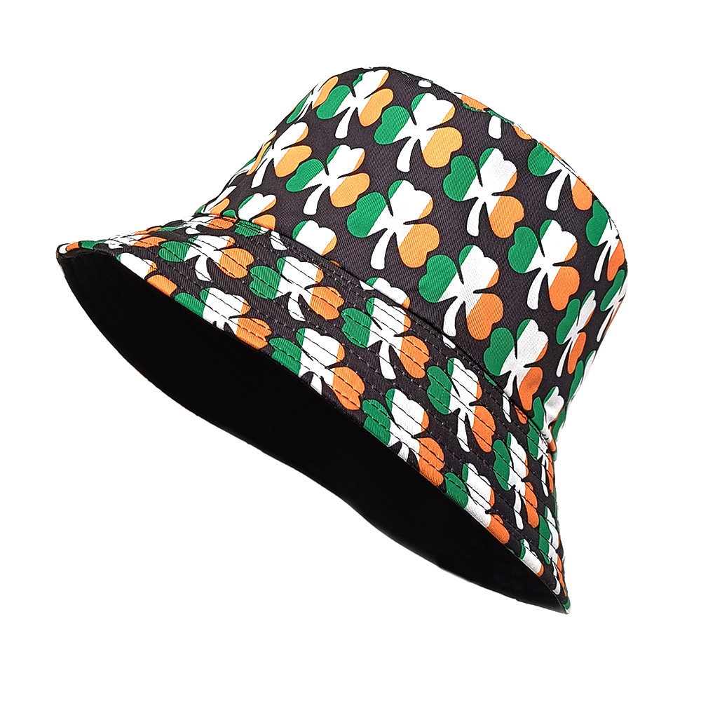圣帕特里克节帽子三叶草印花渔夫帽男女春夏季户外时尚防晒遮阳帽