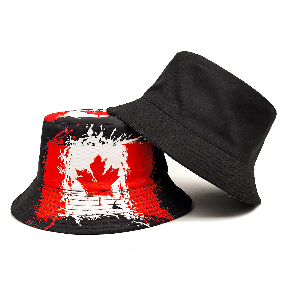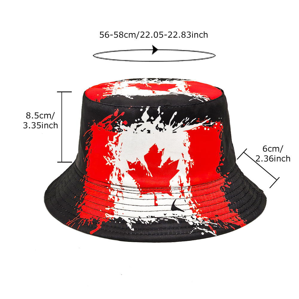 加拿大国旗图案渔夫帽跨境男女印花盆帽欧美时尚户外防晒遮阳帽子