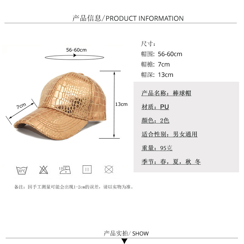 跨境新品仿鳄鱼皮棒球帽欧美时尚潮流男女情侣帽弯檐帽遮阳鸭舌帽