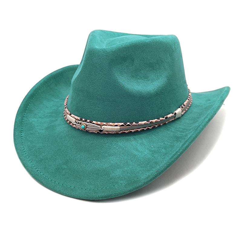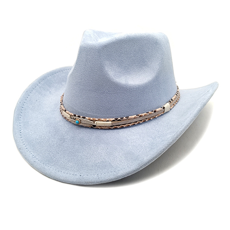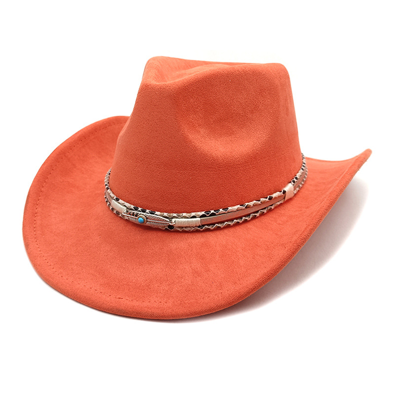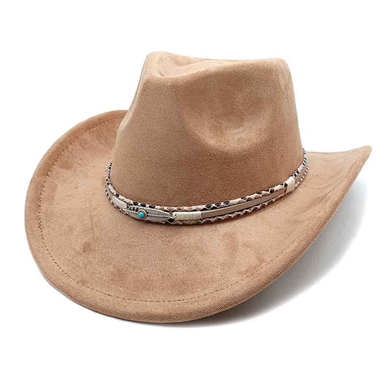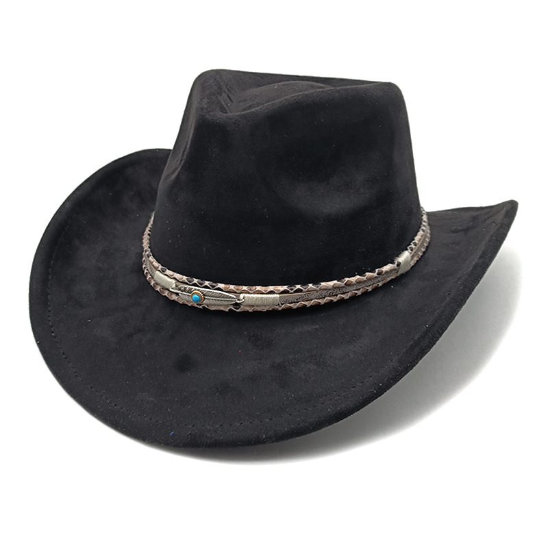 少数民族风英礼帽麂皮绒男女士情侣帽西部牛仔礼帽表演用爵士帽