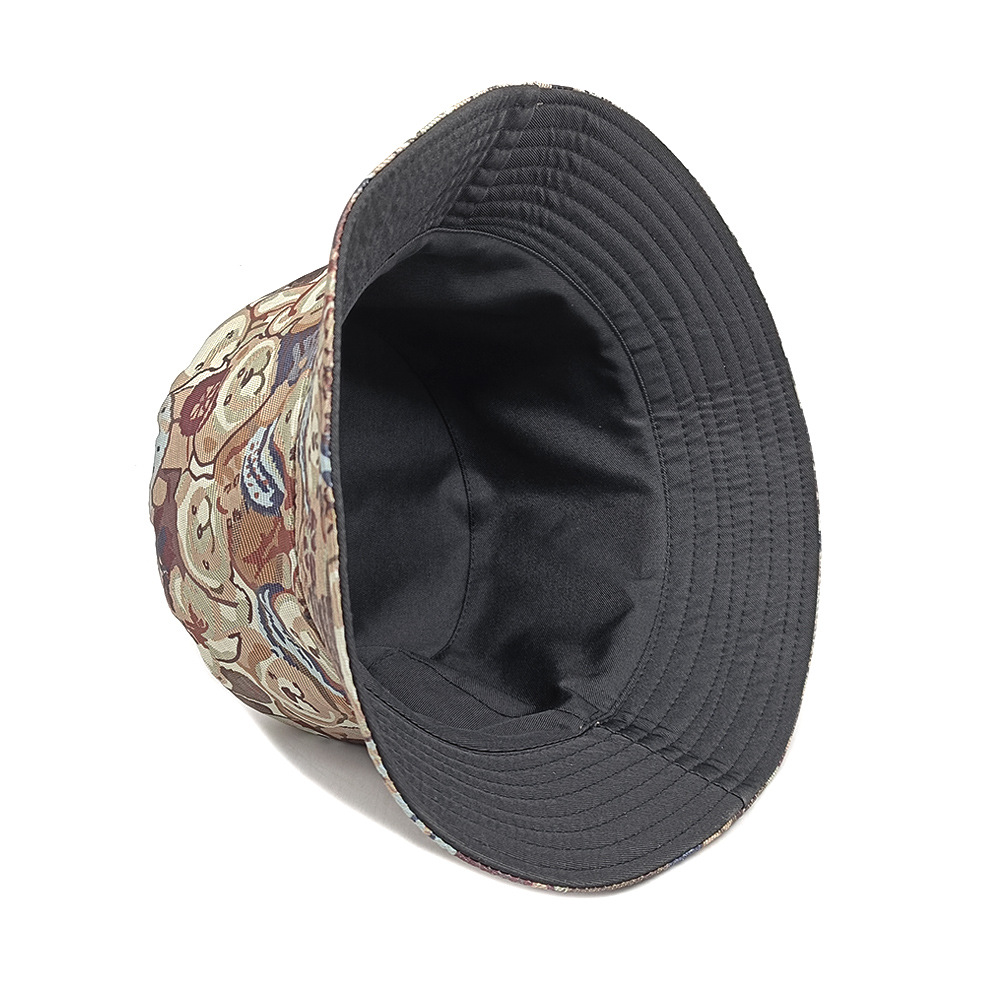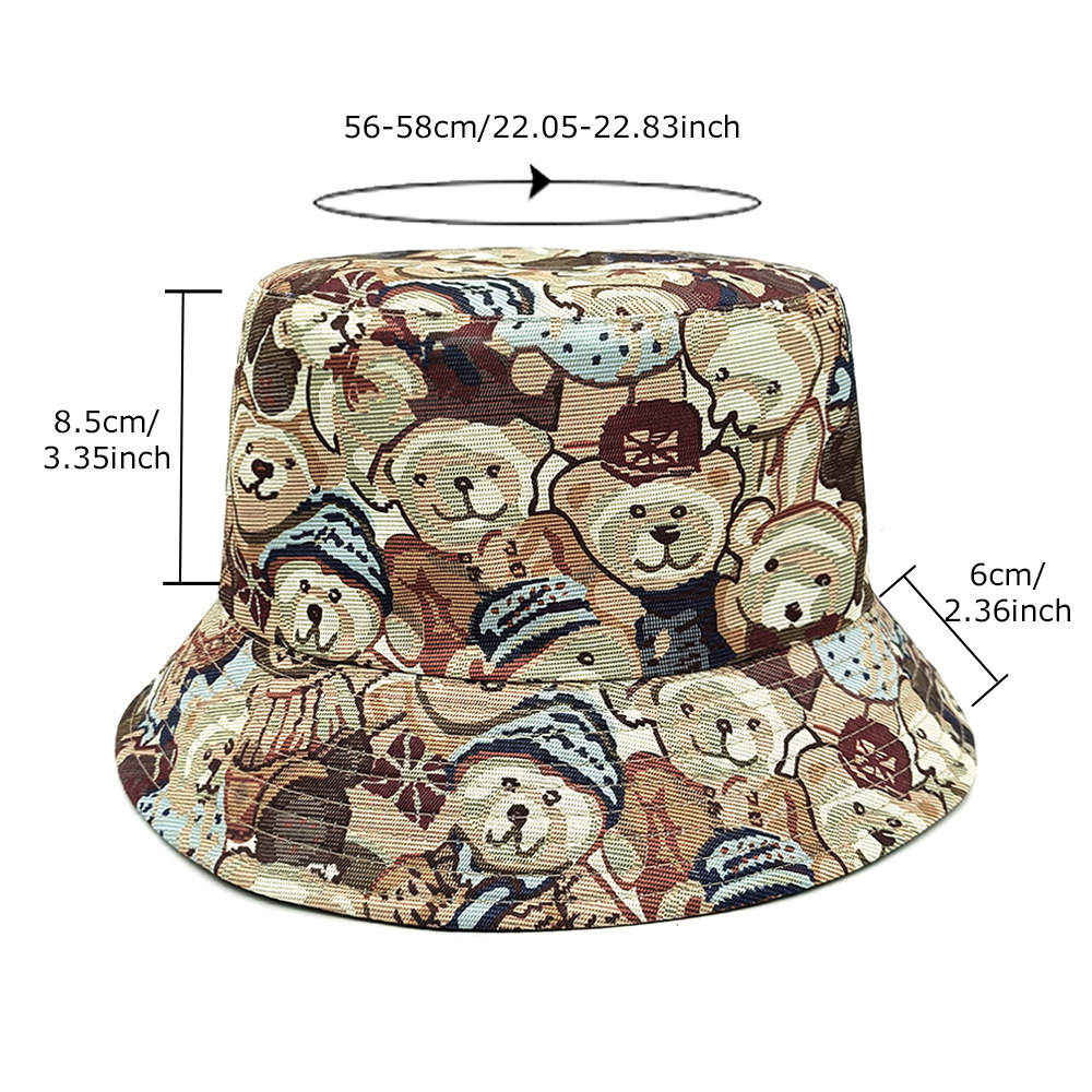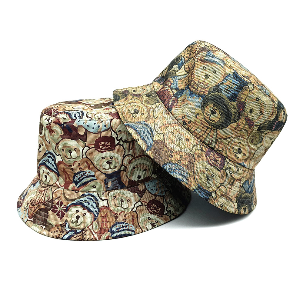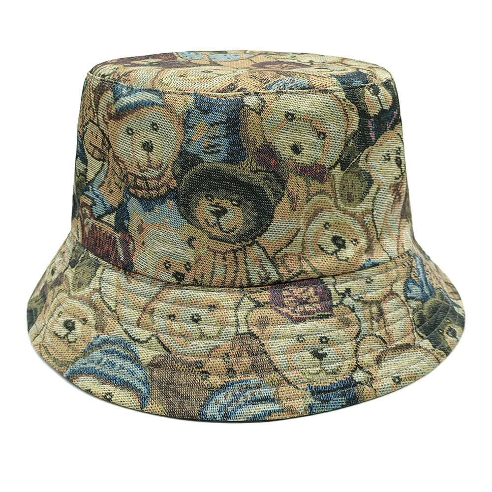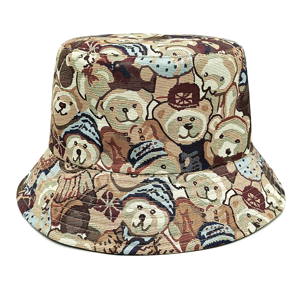 春夏季小熊图案渔夫帽时尚提花萌萌小熊防晒大檐可折叠遮脸盆帽