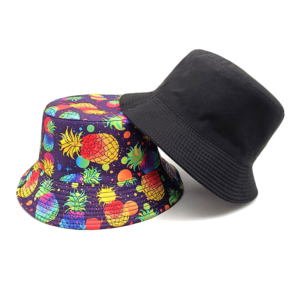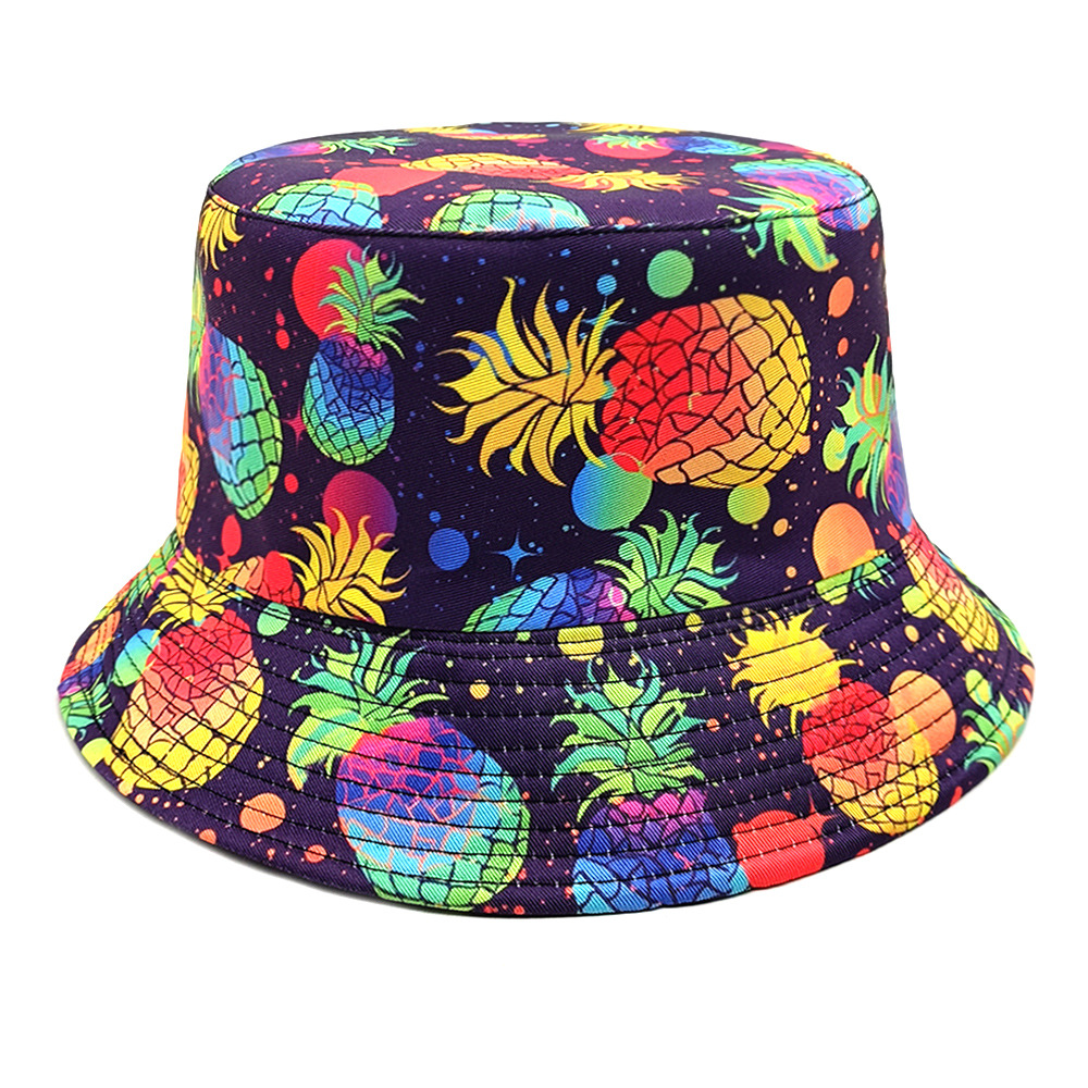 春夏新款菠萝图案渔夫帽欧美外贸印花女户外运动遮阳帽子休闲盆帽