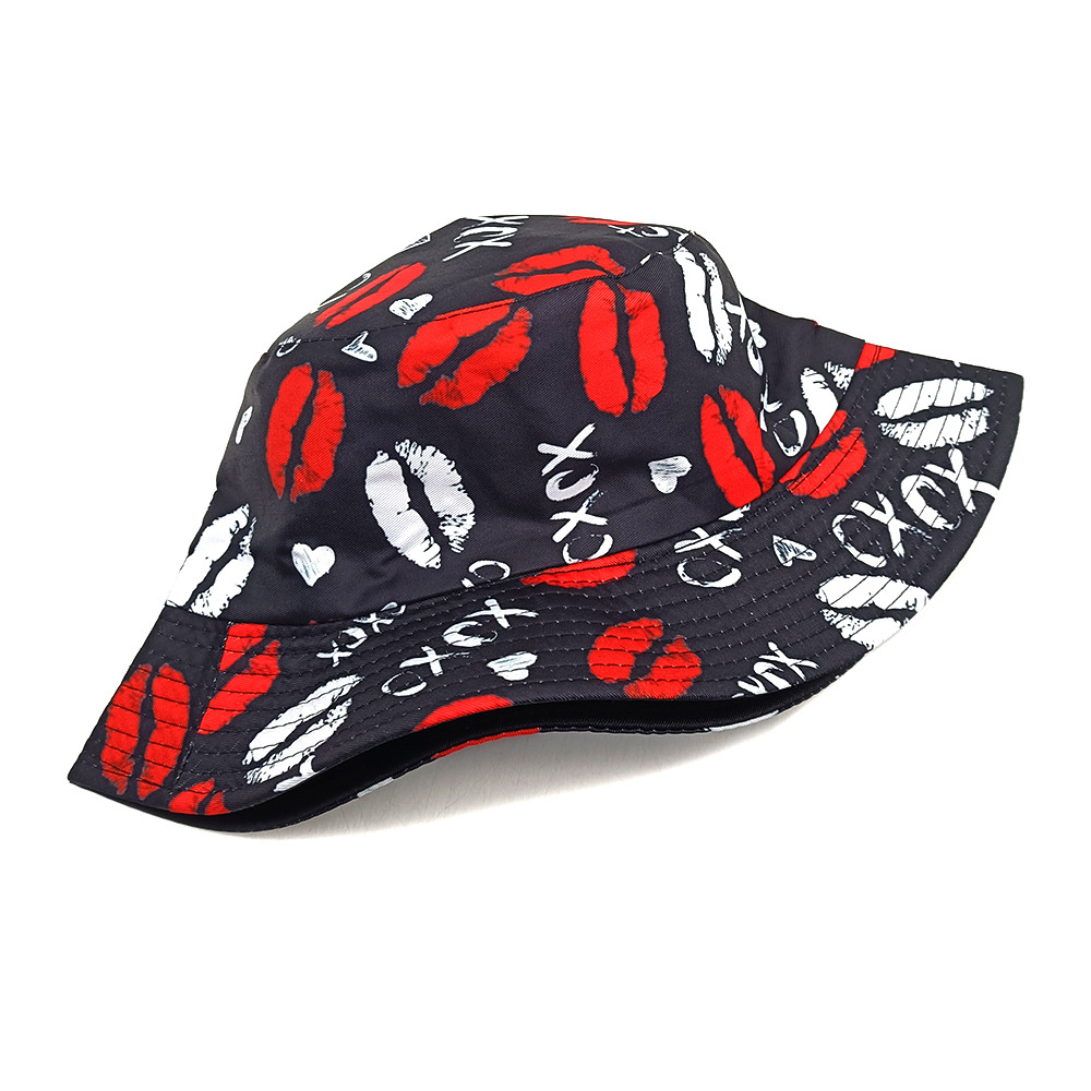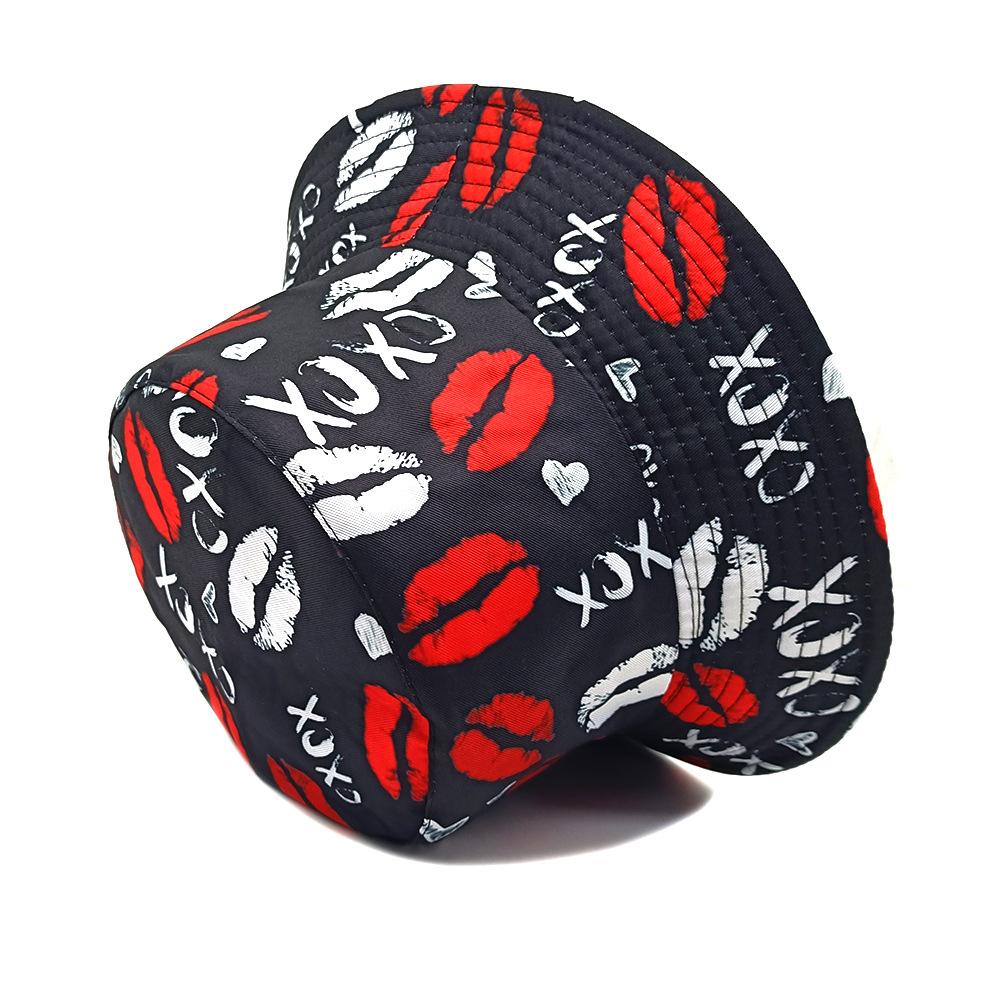 外贸情人节嘴唇渔夫帽爱心涂鸦盆帽女百搭防晒太阳帽情侣遮阳帽女