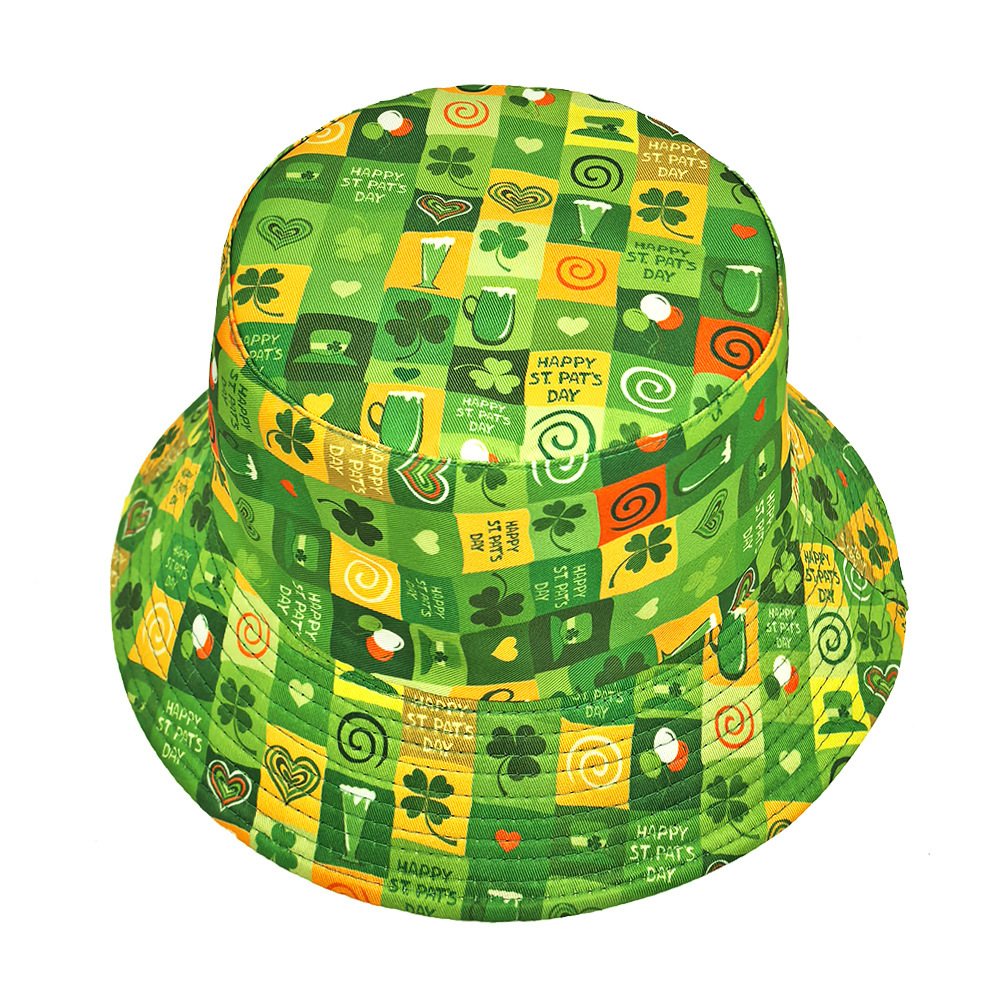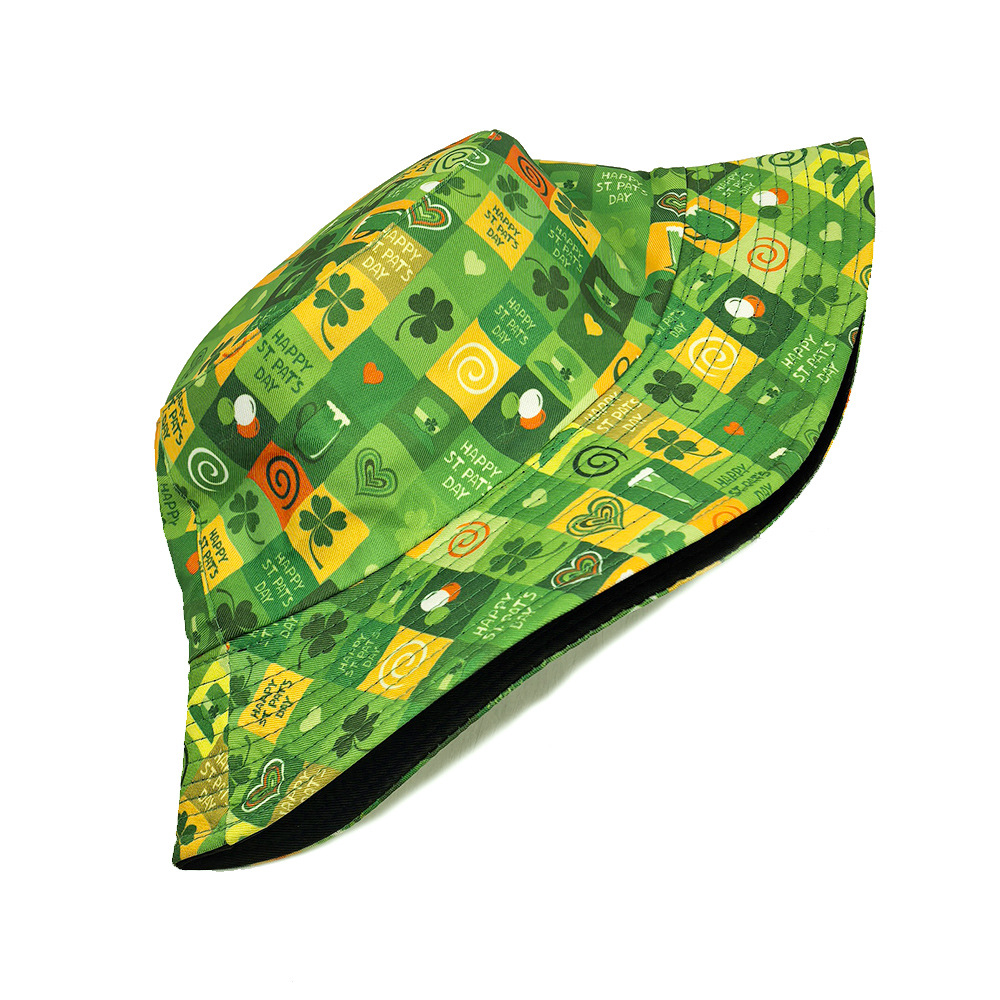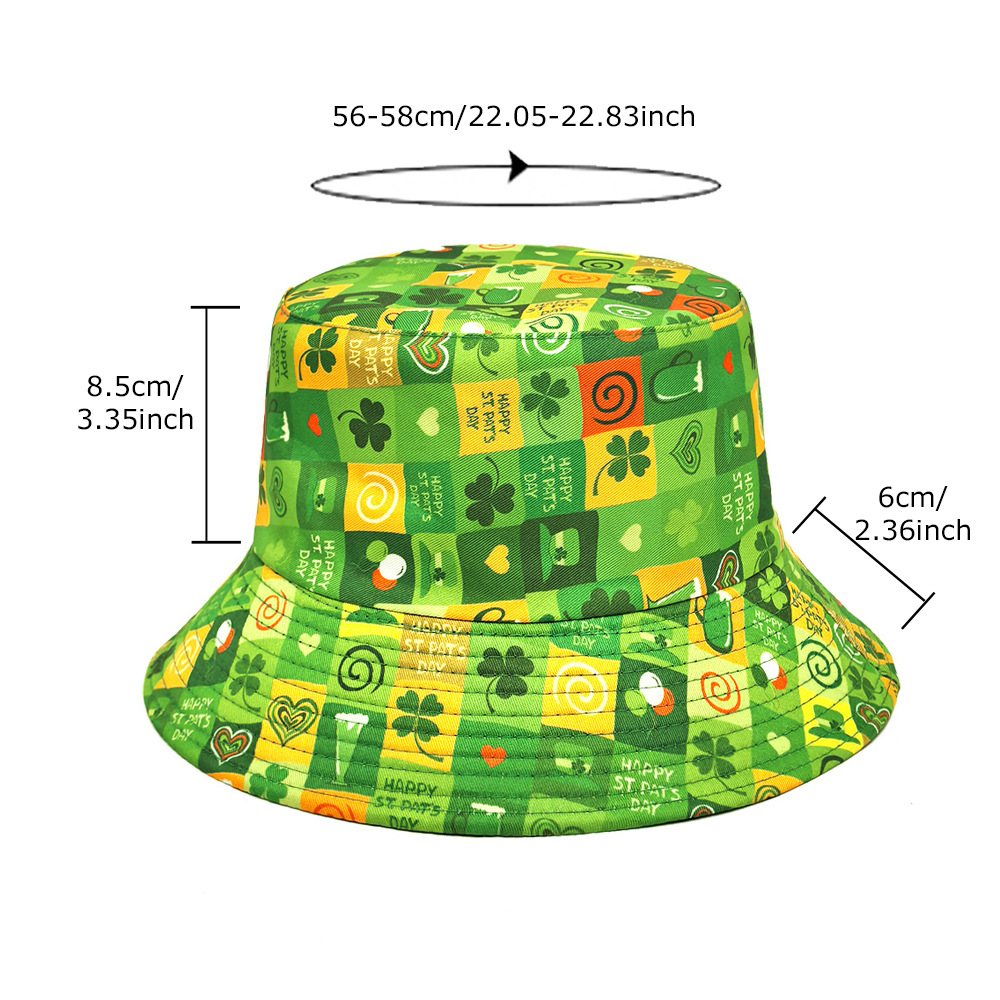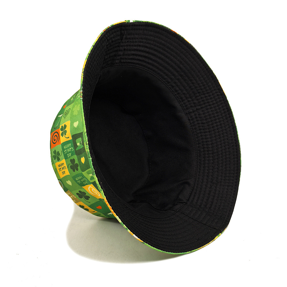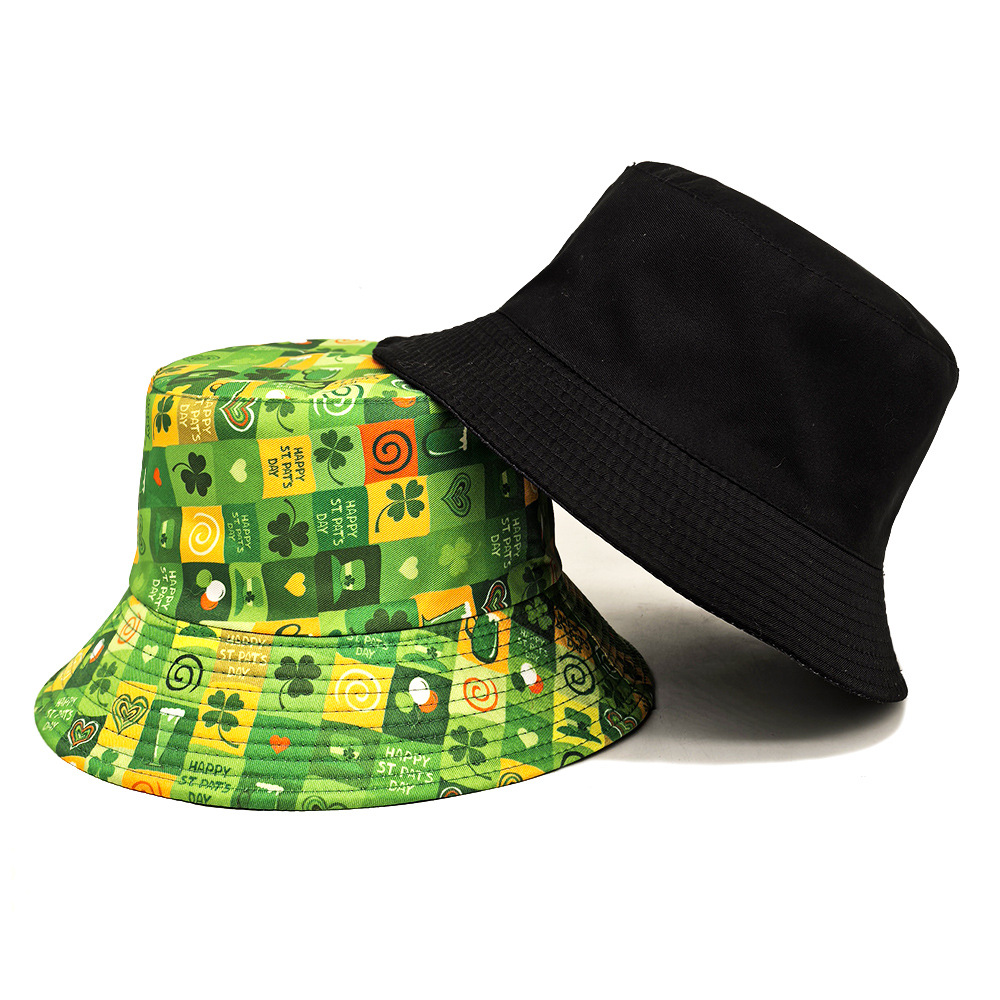 爱尔兰四叶草图案印花渔夫帽男女双面戴盆帽女百搭防晒帽遮阳帽子